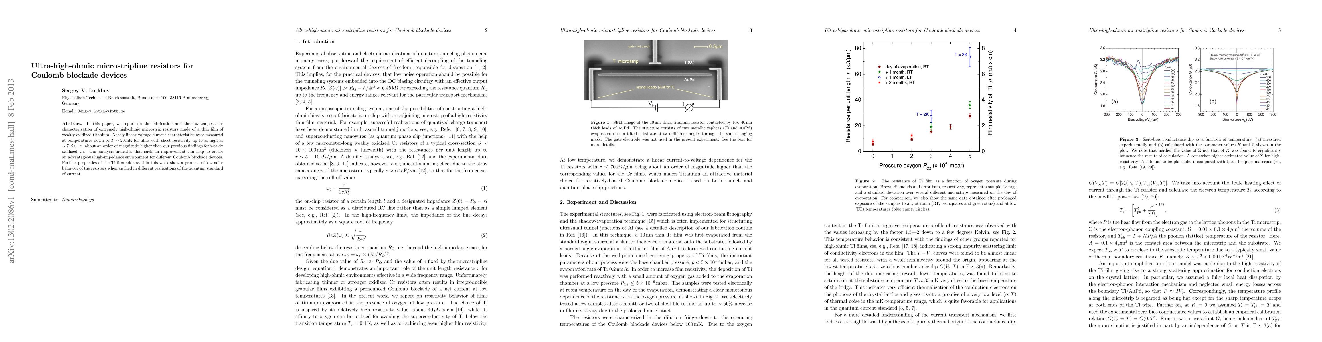 In this paper, we report on the fabrication and the low-temperature characterization of extremely high-ohmic microstrip resistors made of a thin film of weakly oxidized titanium. Nearly linear voltage-current characteristics were measured at temperatures down to $T \sim \unit[20]{mK}$ for films with sheet resistivity up to as high as $\sim \unit[7]{k\Omega}$, i.e. about an order of magnitude higher than our previous findings for weakly oxidized Cr. Our analysis indicates that such an improvement can help to create an advantageous high-impedance environment for different Coulomb blockade devices. Further properties of the Ti film addressed in this work show a promise of low-noise behavior of the resistors when applied in different realizations of the quantum standard of current.