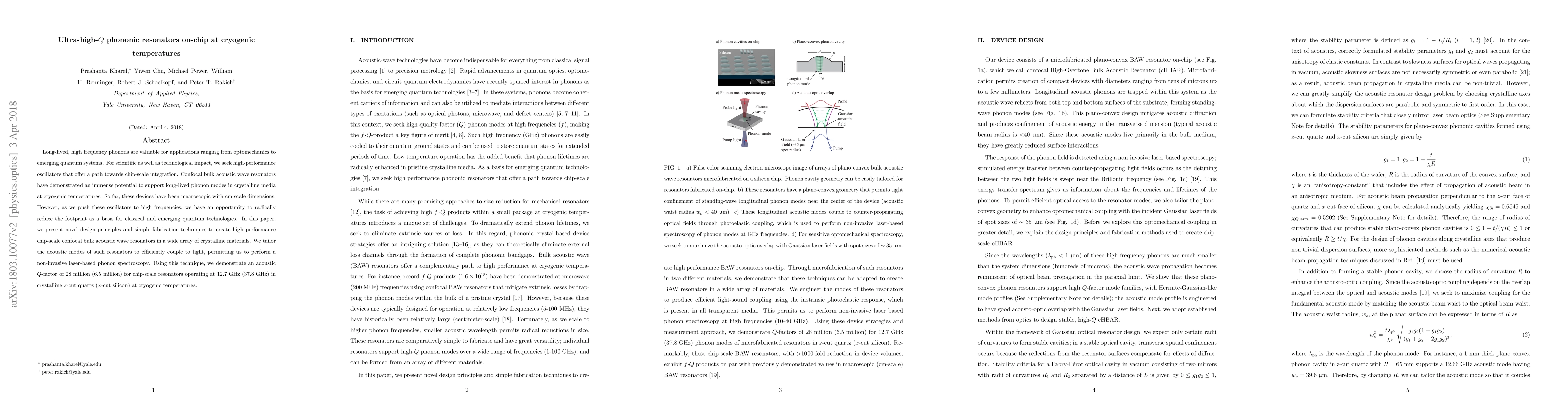 Long-lived, high-frequency phonons are valuable for applications ranging from optomechanics to emerging quantum systems. For scientific as well as technological impact, we seek high-performance oscillators that offer a path towards chip-scale integration. Confocal bulk acoustic wave resonators have demonstrated an immense potential to support long-lived phonon modes in crystalline media at cryogenic temperatures. So far, these devices have been macroscopic with cm-scale dimensions. However, as we push these oscillators to high frequencies, we have an opportunity to radically reduce the footprint as a basis for classical and emerging quantum technologies. In this paper, we present novel design principles and simple fabrication techniques to create high performance chip-scale confocal bulk acoustic wave resonators in a wide array of crystalline materials. We tailor the acoustic modes of such resonators to efficiently couple to light, permitting us to perform a non-invasive laser-based phonon spectroscopy. Using this technique, we demonstrate an acoustic $Q$-factor of 28 million (6.5 million) for chip-scale resonators operating at 12.7 GHz (37.8 GHz) in crystalline $z$-cut quartz ($x$-cut silicon) at cryogenic temperatures.