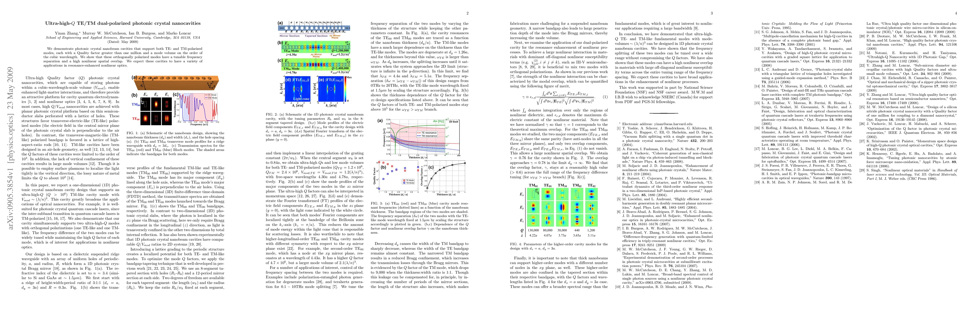 This paper presents photonic crystal nanobeam cavities supporting both TE and TM modes with ultra-high Quality factors exceeding one million and small mode volumes. These cavities exhibit tunable frequency separation and strong nonlinear spatial overlap, promising applications in advanced nonlinear optics.
