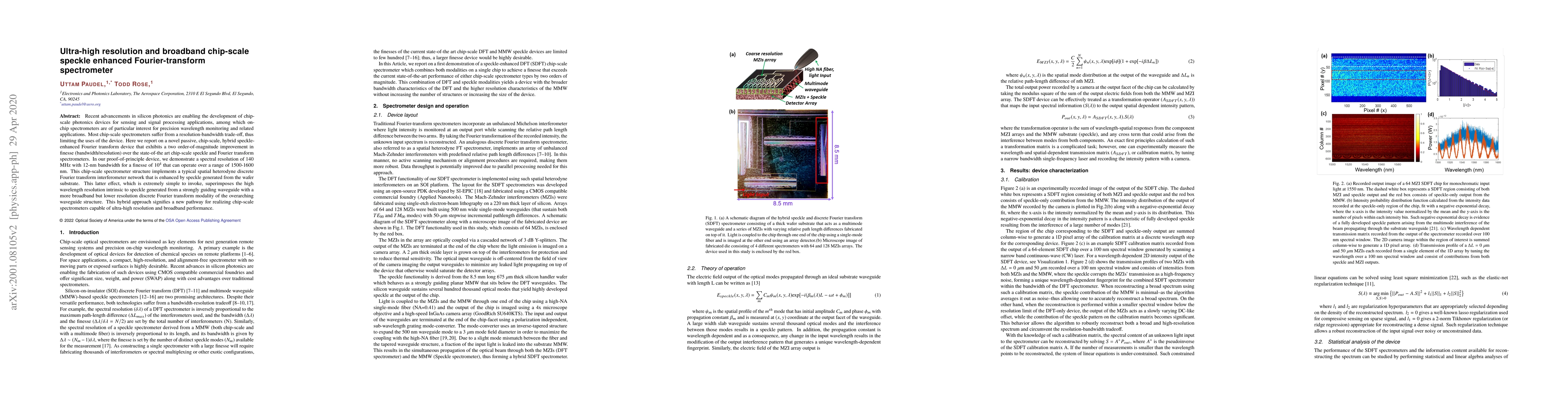 This paper introduces a novel chip-scale spectrometer that combines speckle-enhanced Fourier transform techniques to achieve a significant improvement in resolution and bandwidth. The device demonstrates a spectral resolution of 140 MHz with a 12-nm bandwidth, offering a two-order-of-magnitude enhancement in finesse compared to existing technologies.