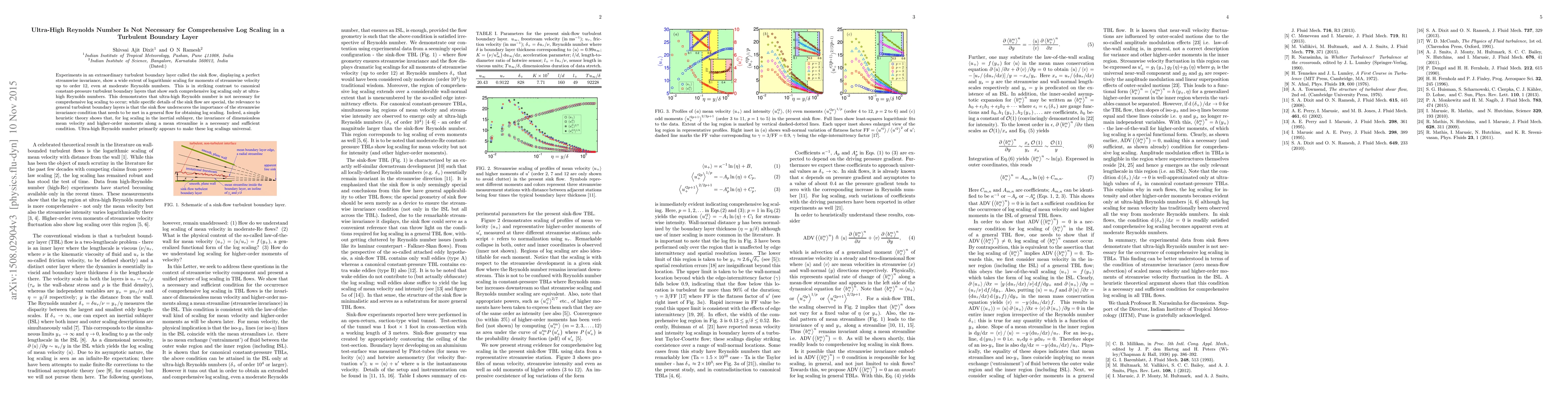 Experiments in an extraordinary turbulent boundary layer called the sink flow, displaying a perfect streamwise invariance, show a wide extent of logarithmic scaling for moments of streamwise velocity up to order 12, even at moderate Reynolds numbers. This is in striking contrast to canonical constant-pressure turbulent boundary layers that show such comprehensive log scaling only at ultra-high Reynolds numbers. This demonstrates that ultra-high Reynolds number is not necessary for comprehensive log scaling to occur; while specific details of the sink flow are special, the relevance to general turbulent boundary layers is that the sink flow underscores the importance of the streamwise invariance condition that needs to be met in a general flow for obtaining log scaling. Indeed, a simple heuristic theory shows that, for log scaling in the inertial sublayer, the invariance of dimensionless mean velocity and higher-order moments along a mean streamline is a necessary and sufficient condition. Ultra-high Reynolds number primarily appears to make these log scalings universal.