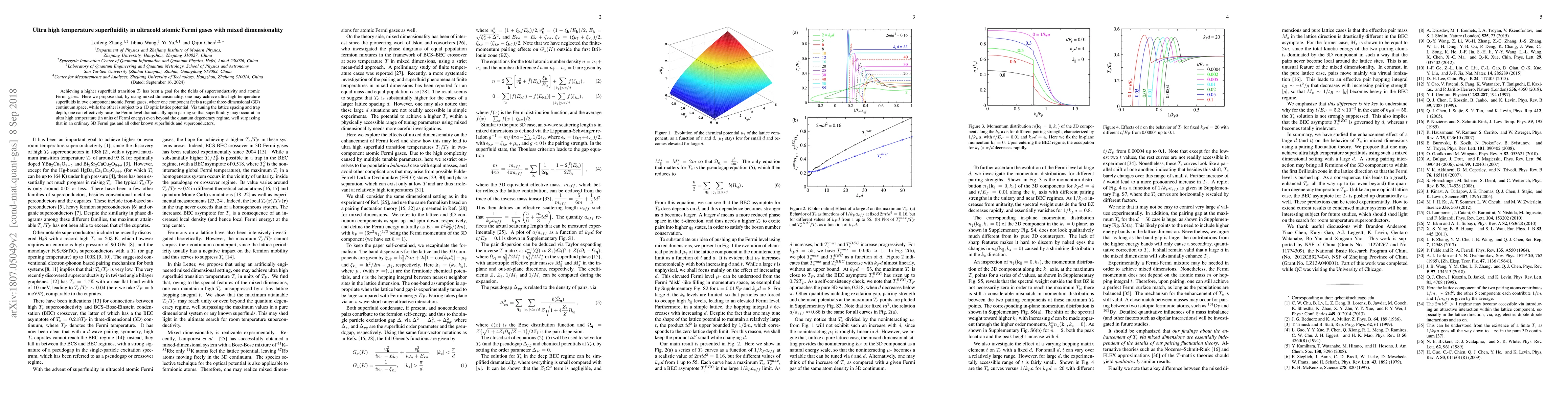 This paper proposes achieving ultra-high temperature superfluidity in two-component atomic Fermi gases through mixed dimensionality, where one component experiences a 3D continuum and the other a 1D lattice. By adjusting lattice parameters, the Fermi level is raised significantly, enabling superfluidity at temperatures exceeding those in ordinary 3D Fermi gases.