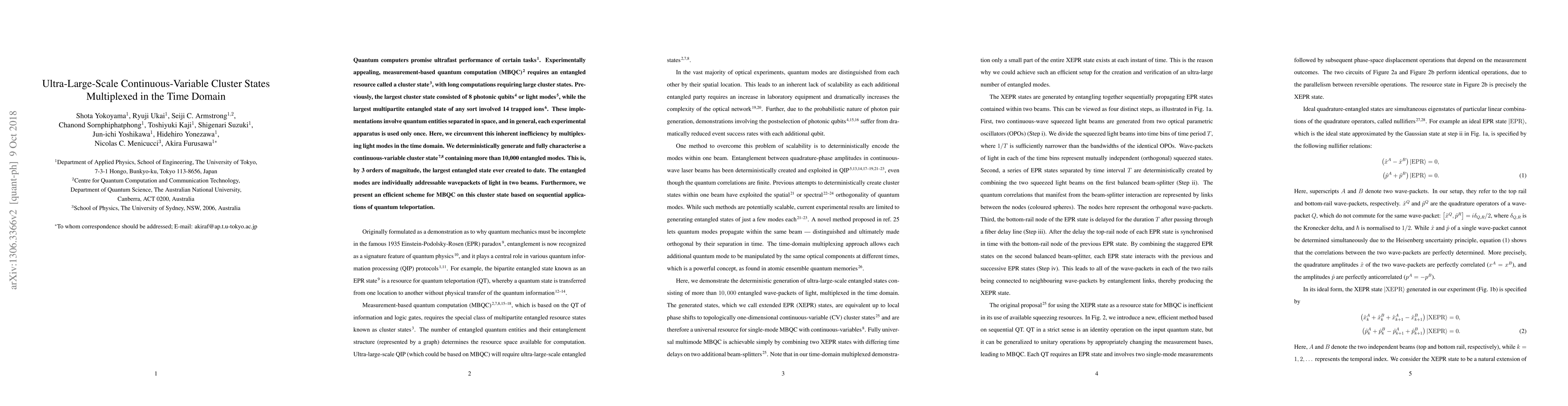 This paper reports the creation of the largest continuous-variable cluster state to date, containing over 10,000 entangled photonic modes multiplexed in the time domain, significantly advancing measurement-based quantum computation. An efficient scheme for quantum teleportation is also proposed for computations on this massive cluster state.