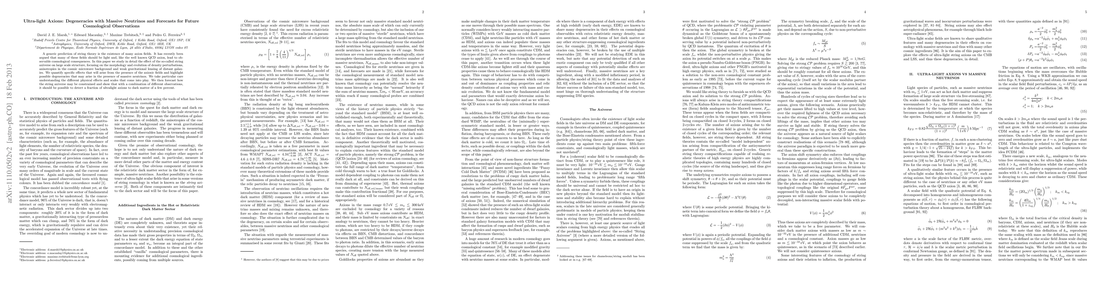 A generic prediction of string theory is the existence of many axion fields. It has recently been argued that many of these fields should be light and, like the well known QCD axion, lead to observable cosmological consequences. In this paper we study in detail the effect of the so-called string axiverse on large scale structure, focusing on the morphology and evolution of density perturbations, anisotropies in the cosmic microwave background and weak gravitational lensing of distant galaxies. We quantify specific effects that will arise from the presence of the axionic fields and highlight possible degeneracies that may arise in the presence of massive neutrinos. We take particular care understanding the different physical effects and scales that come into play. We then forecast how the string axiverse may be constrained and show that with a combination of different observations, it should be possible to detect a fraction of ultralight axions to dark matter of a few percent.