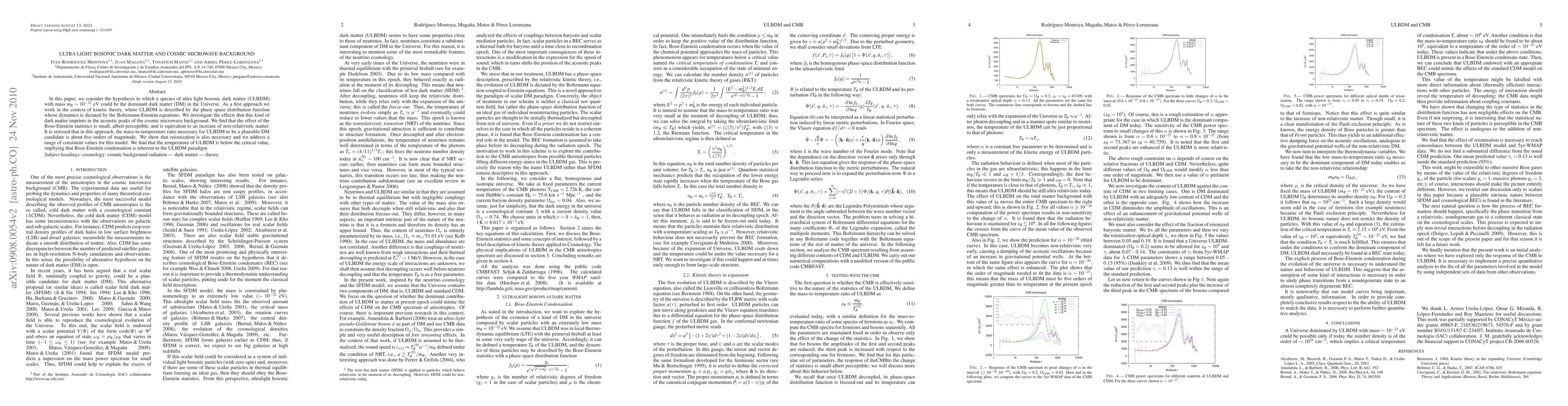 This research explores ultra-light bosonic dark matter (ULBDM) with mass ~10^-22 eV as the dominant dark matter. Using kinetic theory and Boltzmann-Einstein equations, it finds that ULBDM's Bose-Einstein statistics subtly impacts cosmic microwave background acoustic peaks, equivalent to non-relativistic matter increase. The study highlights that ULBDM's mass-to-temperature ratio must be five orders less, and reionization is necessary, with ULBDM temperature below critical value, indicating inherent Bose-Einstein condensation.