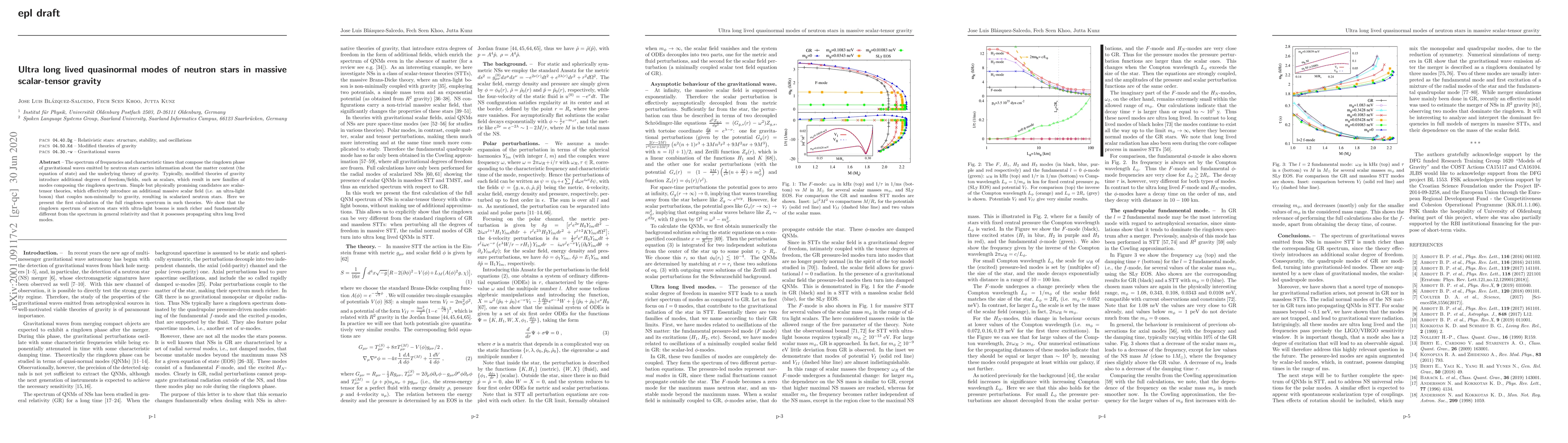 This paper investigates the ringdown phase of neutron stars in massive scalar-tensor gravity, revealing a richer spectrum of gravitational wave frequencies compared to general relativity. It finds that the presence of an ultra-light boson introduces ultra long-lived quasinormal modes, significantly altering the neutron star's gravitational wave signature.