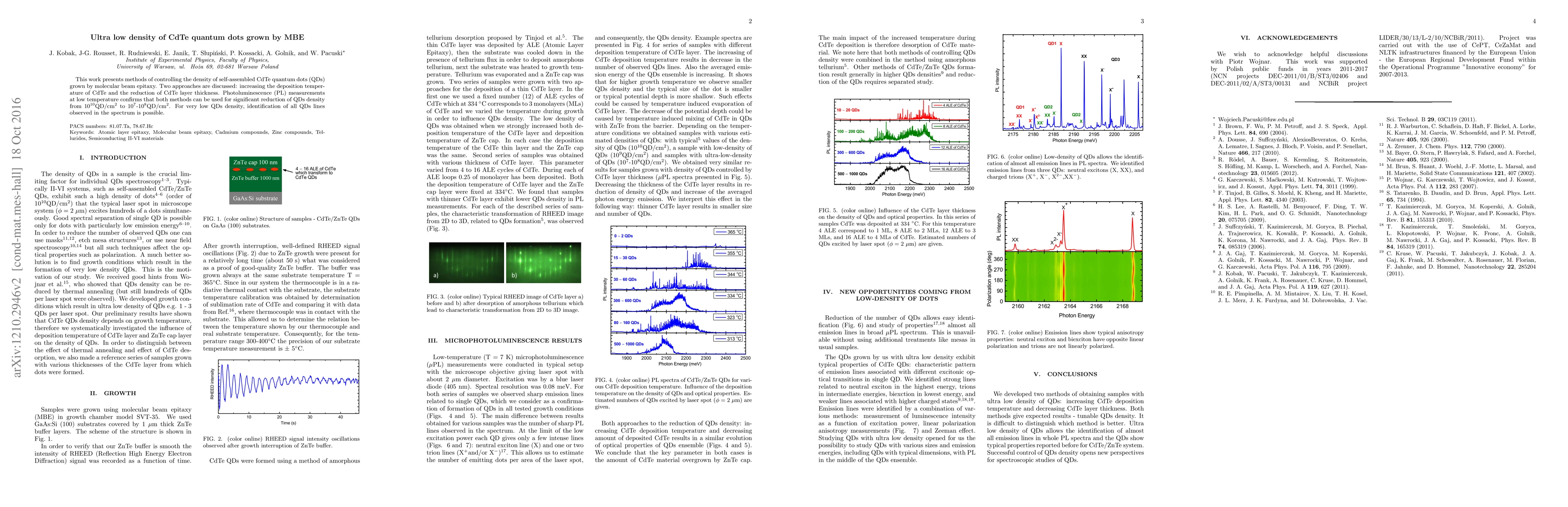 This study explores techniques to reduce the density of CdTe quantum dots grown via molecular beam epitaxy, achieving densities from 10$^{10}$ to 10$^7$-10$^8$ QD/cm$^2$ through increased deposition temperature and thinner CdTe layers, confirmed by low-temperature photoluminescence measurements.