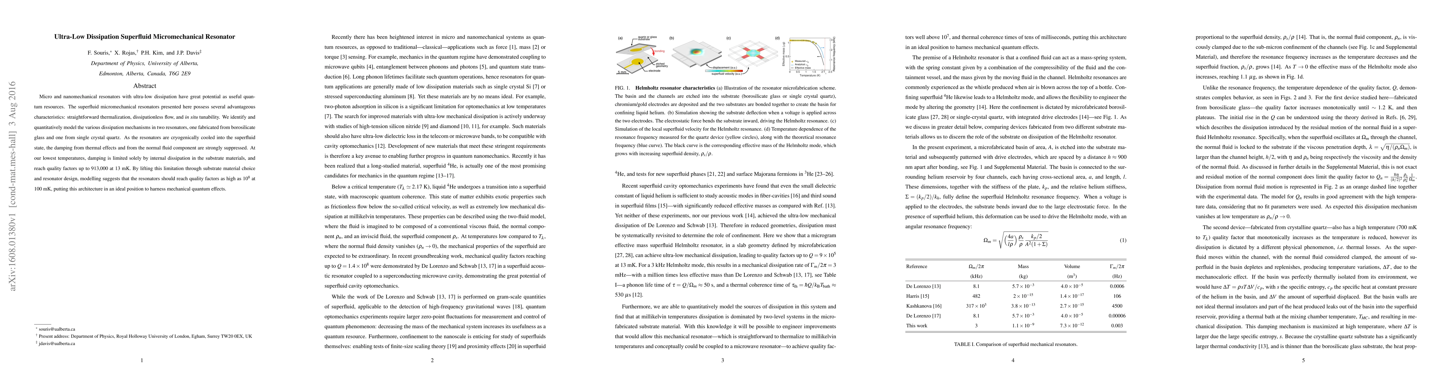 This paper investigates ultra-low dissipation superfluid micromechanical resonators made from borosilicate glass and single crystal quartz, achieving quality factors up to 913,000 at 13 mK. The study identifies and models dissipation mechanisms, suggesting potential for even higher quality factors of up to 10$^8$ at 100 mK through improved substrate materials and design.