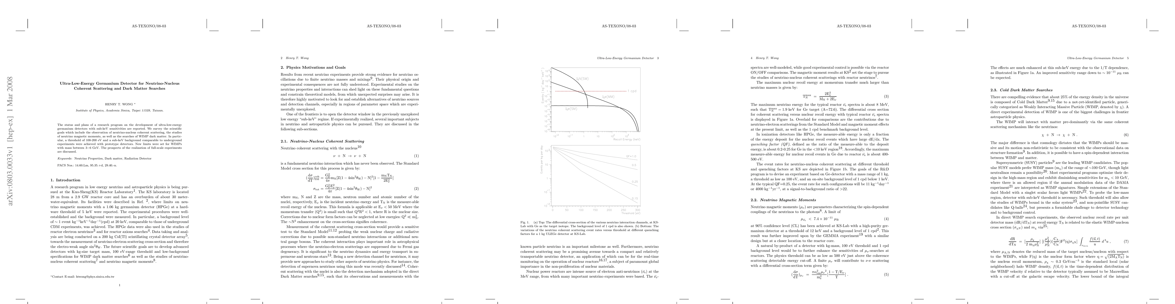 This paper reports on the development of ultra-low-energy germanium detectors capable of sub-keV sensitivities, aiming to observe neutrino-nucleus coherent scattering and search for WIMP dark matter. Prototype detectors achieved a threshold of 100-200 eV and set new limits for WIMPs in the mass range of 3-6 GeV.