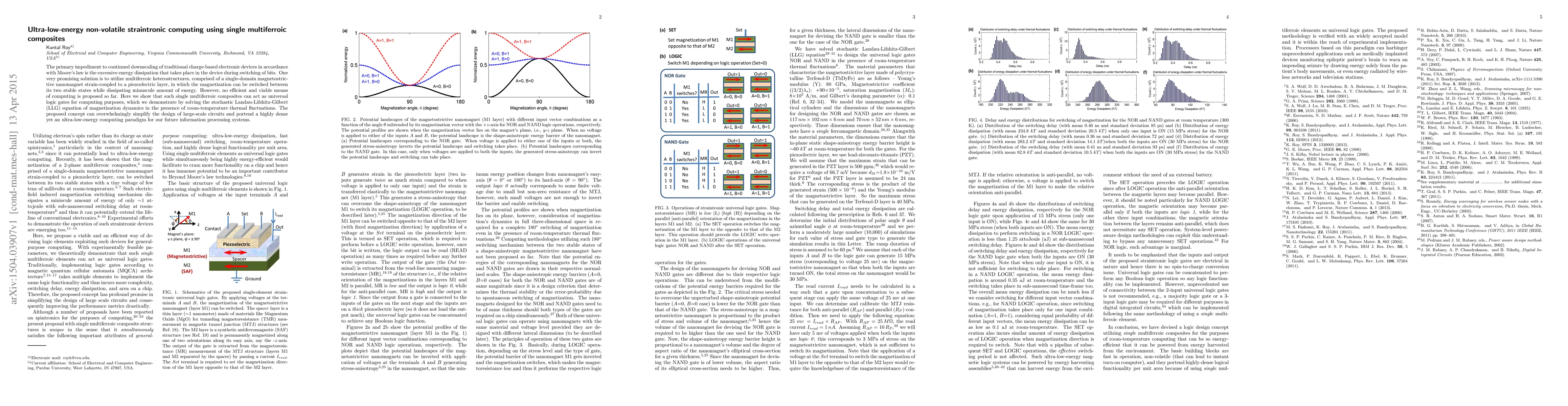 This paper proposes ultra-low-energy non-volatile straintronic computing using single multiferroic composites, demonstrating that these composites can function as universal logic gates, potentially revolutionizing future information processing systems with minimal energy dissipation.