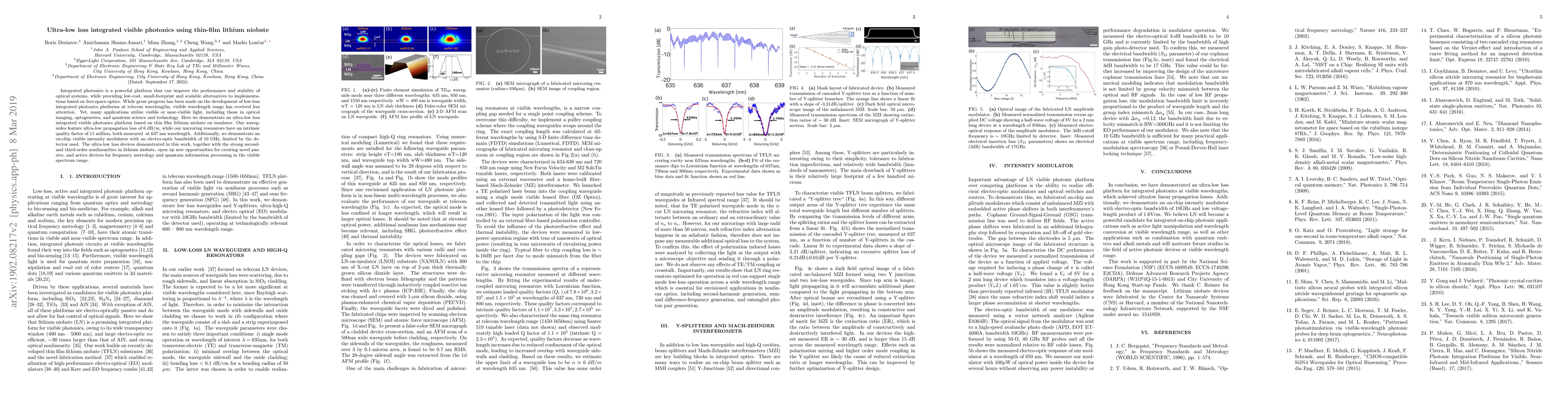The paper presents a thin-film lithium niobate integrated visible photonics platform with ultra-low loss, high-Q cavities, and an on-chip intensity modulator, showcasing its potential for various applications.