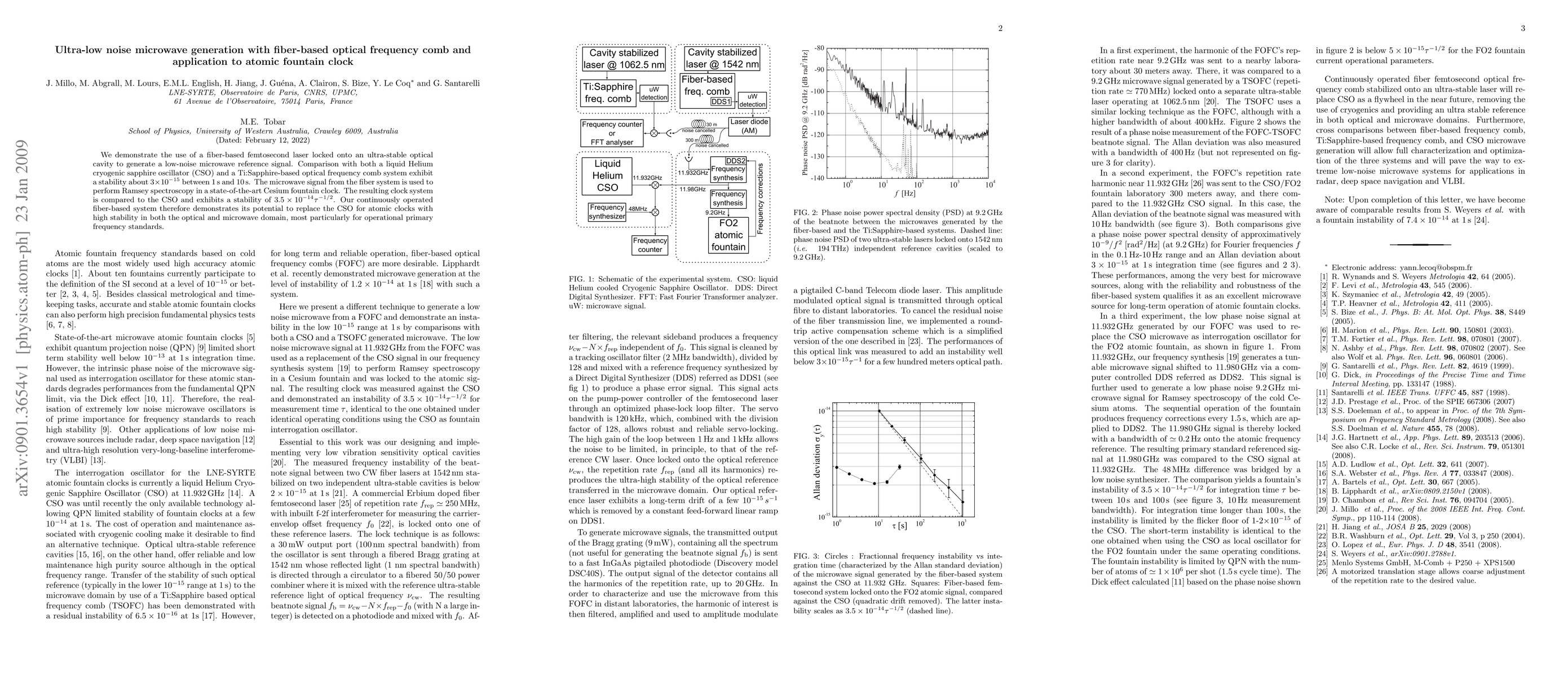 This research paper demonstrates an ultra-low noise microwave generation using a fiber-based optical frequency comb, achieving a stability of about $3\times10^{-15}$ over 1 to 10 seconds. It also shows its application in a Cesium fountain clock, achieving a stability of $3.5\times10^{-14}\tau^{-1/2}$, potentially replacing cryogenic oscillators for high-stability atomic clocks.
