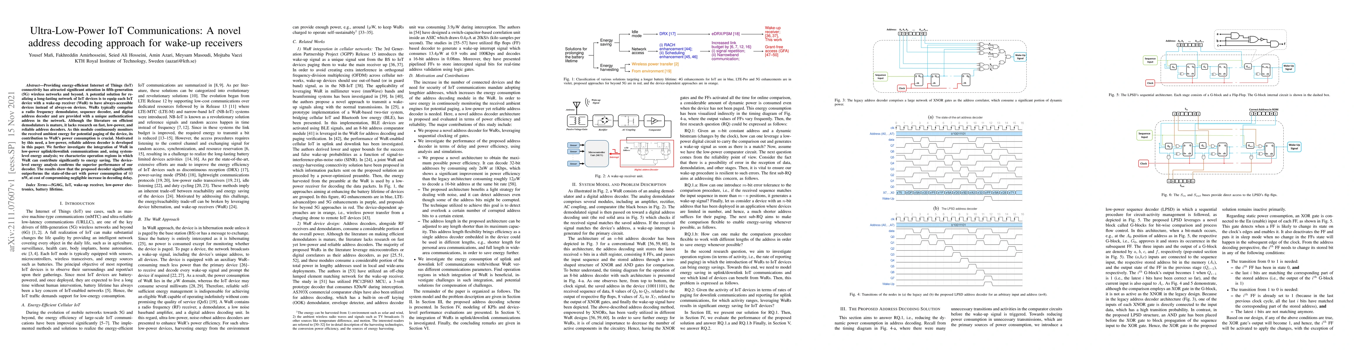 The development of a low-power wake-up receiver with high sensitivity and an efficient address decoder.