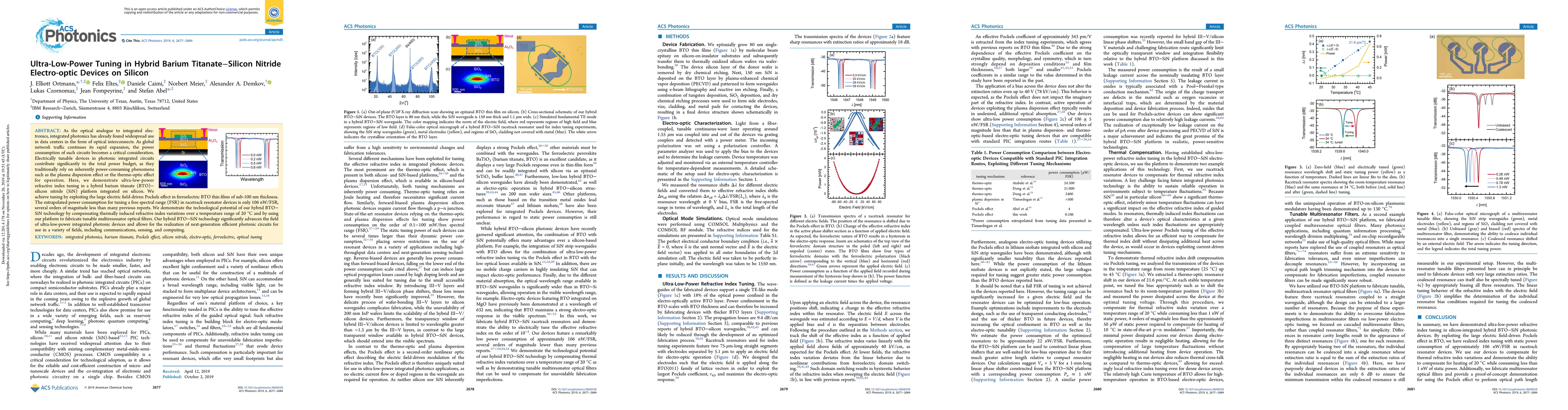 This paper demonstrates ultra-low-power refractive index tuning in hybrid barium titanate-silicon nitride photonic devices on silicon, achieving 106 nW/FSR by exploiting the Pockels effect in ferroelectric BTO thin films. The technology shows potential for next-generation efficient photonic circuits in communications, sensing, and computing.
