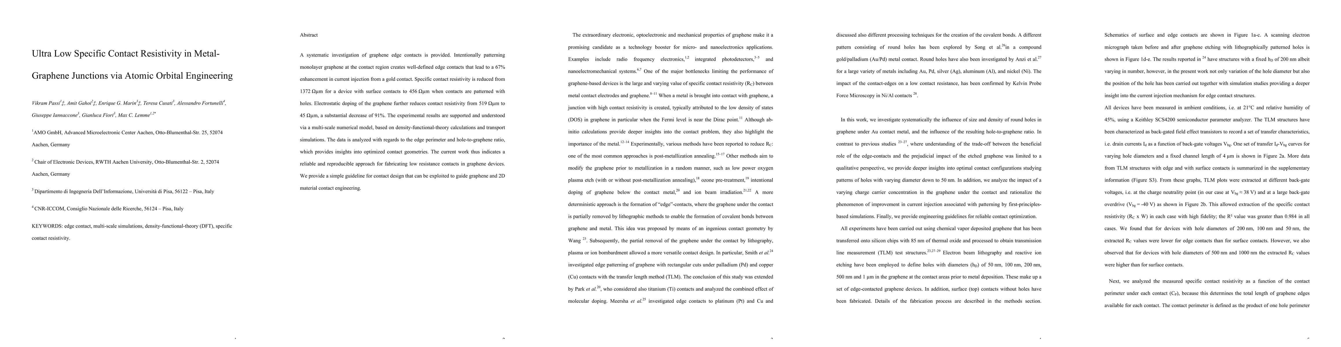 This study demonstrates how intentional patterning of monolayer graphene edges and electrostatic doping can significantly reduce specific contact resistivity in metal-graphene junctions, achieving a 67% improvement in current injection and a 91% reduction in resistivity, supported by detailed numerical modeling. The findings offer practical guidelines for designing low-resistance contacts in graphene devices.
