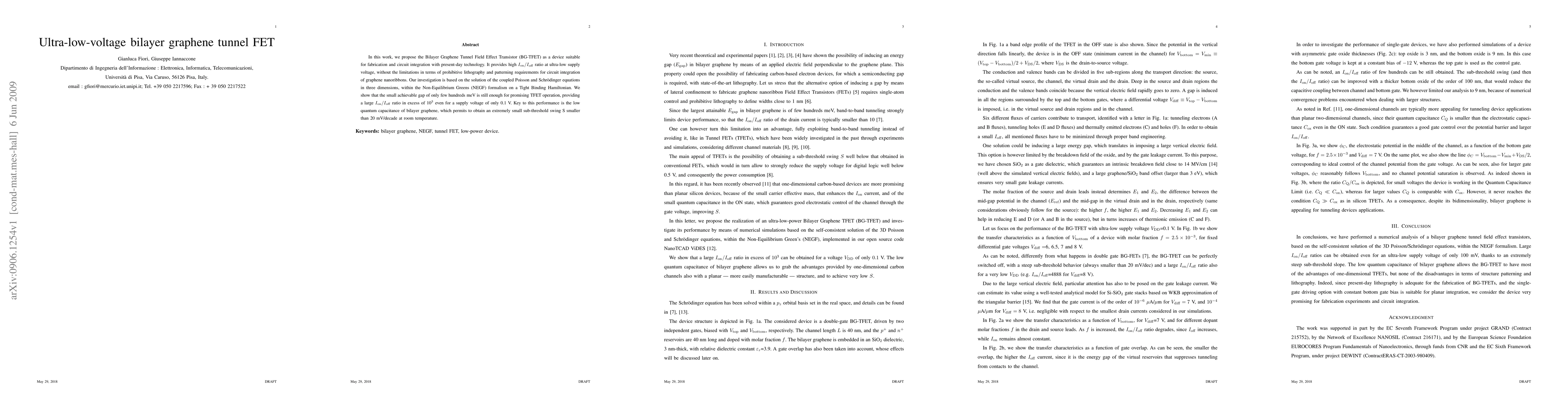 The paper introduces the BG-TFET concept and demonstrates its potential using advanced numerical simulations, highlighting the benefits of bilayer graphene's low quantum capacitance for ultra-low voltage operation.