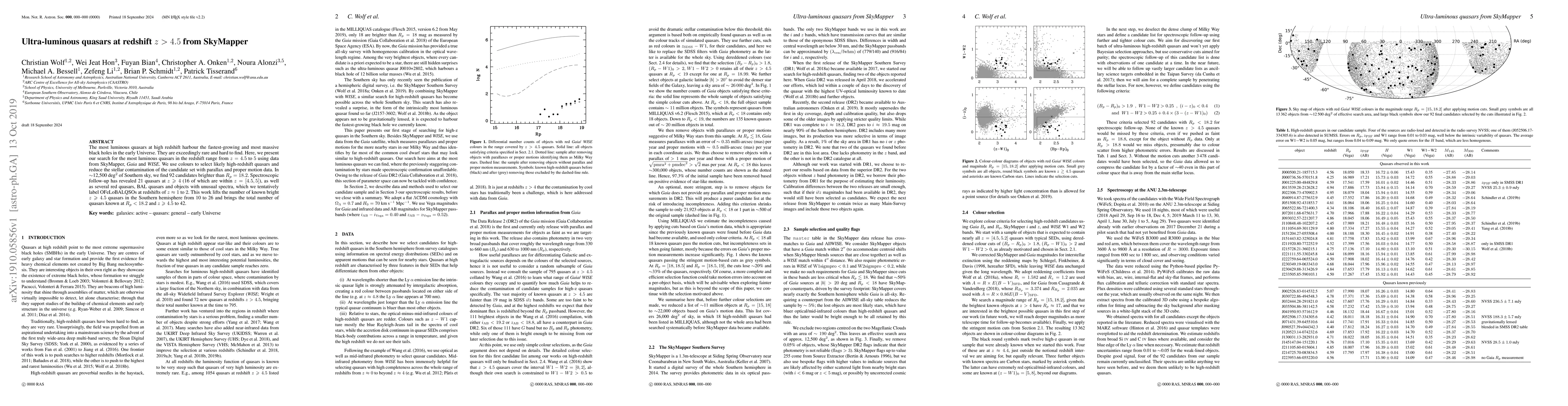 This study identifies ultra-luminous quasars at redshifts $z>4.5$ using SkyMapper, Gaia, and WISE data, finding 21 quasars at $z\ge 4$, including 16 within $z=[4.5,5]$. This significantly increases the known number of bright quasars at these high redshifts in the Southern sky.