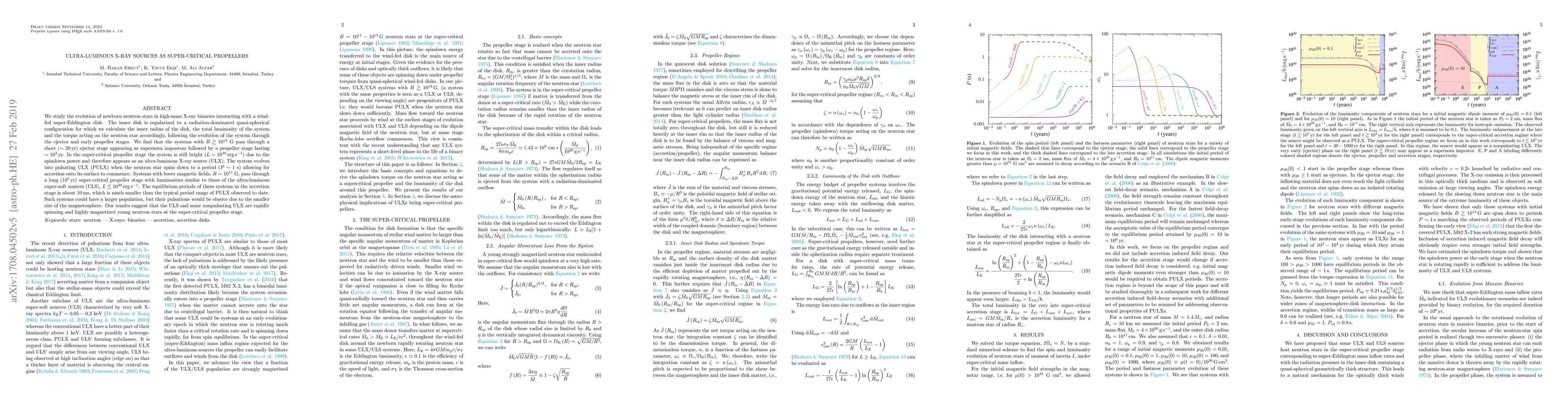 This paper explores the evolution of neutron stars in high-mass X-ray binaries, finding that highly magnetized neutron stars exhibit a super-critical propeller stage, appearing as ultra-luminous X-ray sources (ULX) due to spindown power. Lower magnetic field systems transition to a long super-critical propeller stage, potentially explaining ultra-luminous super-soft sources (ULS).