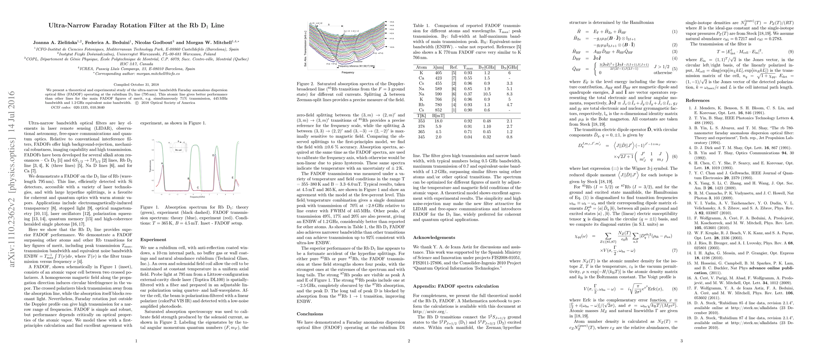 This paper explores an ultra-narrow bandwidth Faraday anomalous dispersion optical filter operating at the rubidium D1 line, demonstrating 71% transmission with a 445 MHz bandwidth and a 1.2 GHz equivalent noise bandwidth, outperforming other atomic lines in key performance metrics.