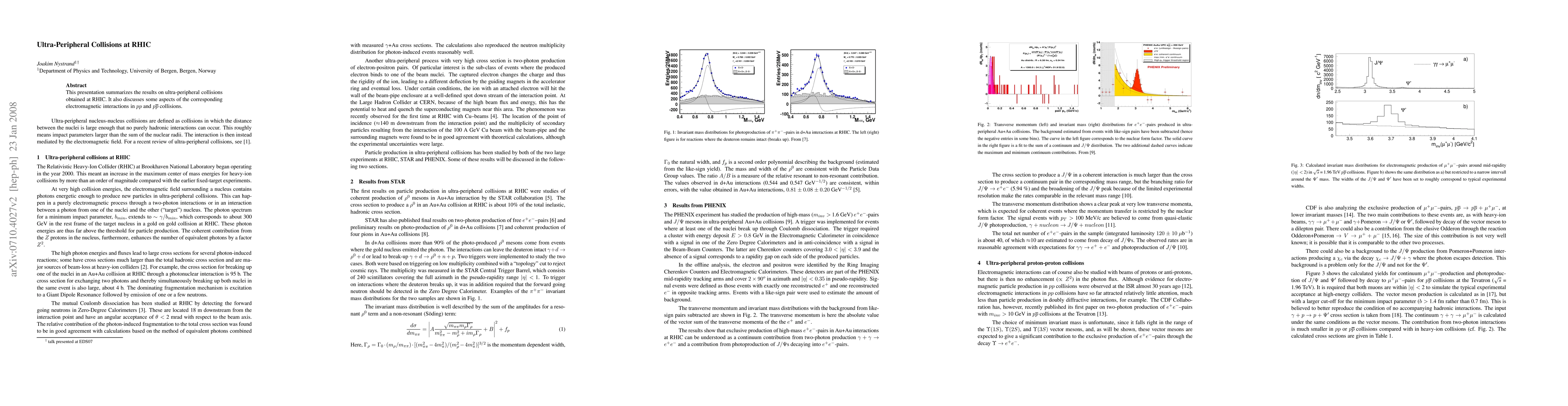 The STAR and PHENIX experiments demonstrate a novel approach to studying ultra-peripheral collisions using heavy-ion and proton-proton beams.