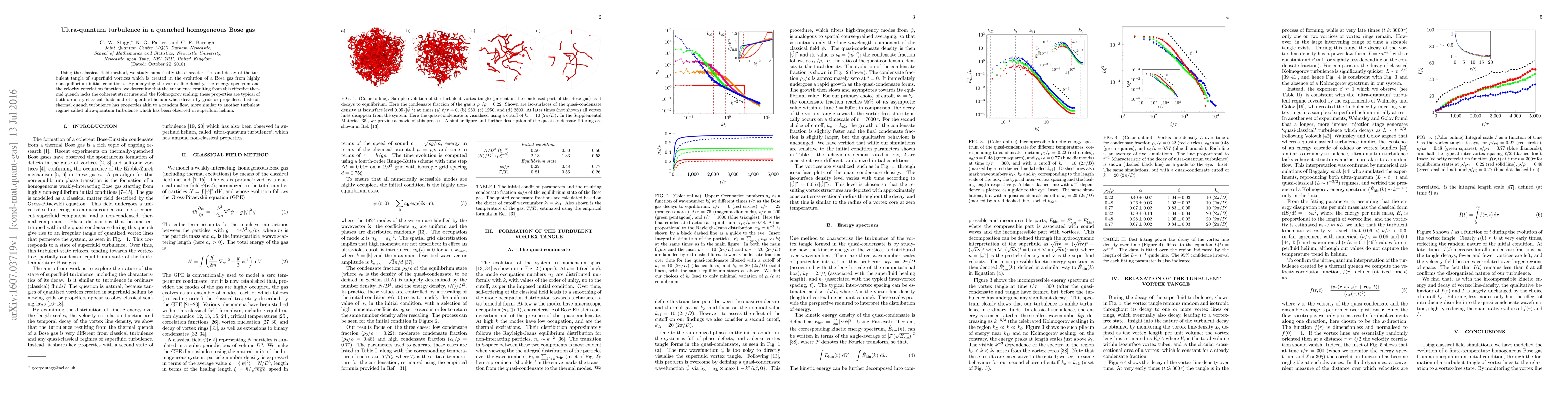 This study numerically investigates the decay and characteristics of turbulence in a quenched homogeneous Bose gas, revealing that the resulting vortex turbulence lacks coherent structures and Kolmogorov scaling, instead resembling ultra-quantum turbulence observed in superfluid helium. The analysis shows that this thermal quench turbulence behaves more like a random flow than typical classical or superfluid turbulence.