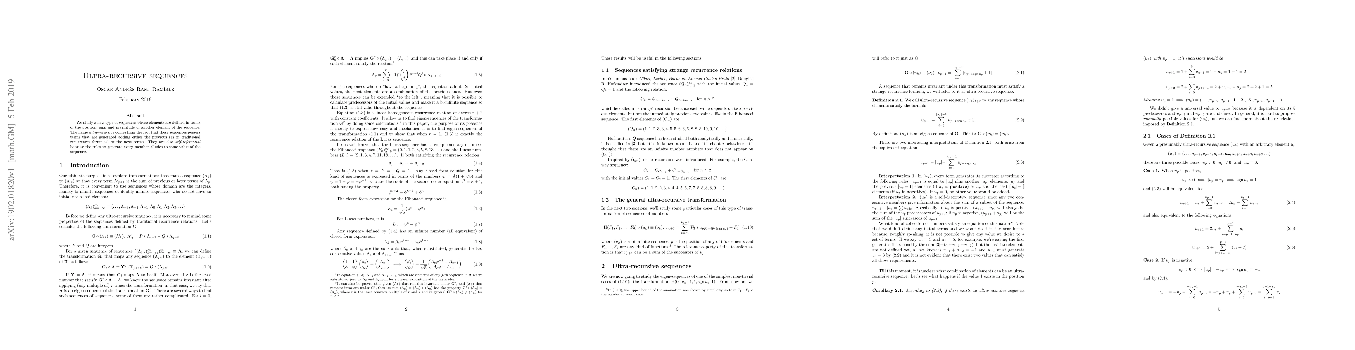 We study a new type of sequences whose elements are defined in terms of the position, sign and magnitude of another element of the sequence. The name ultra-recursive comes from the fact that these sequences possess terms that are generated adding either the previous (as in traditional recurrences formulas) or the next terms. They are also self-referential because the rules to generate every member alludes to some value of the sequence.