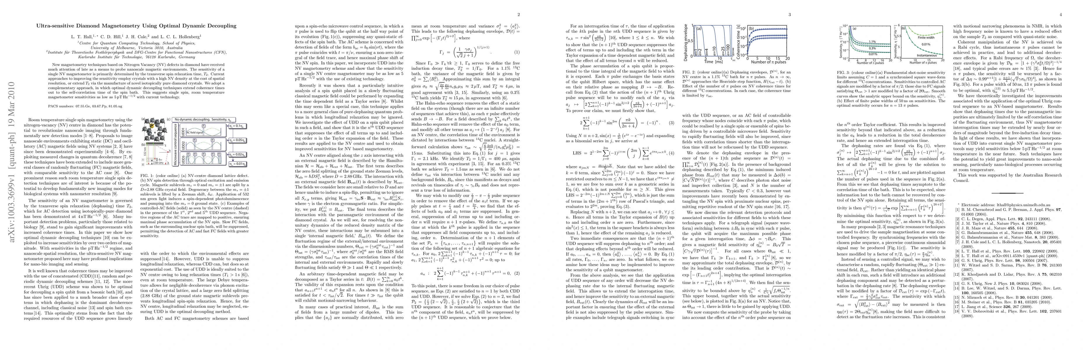 This paper proposes ultra-sensitive diamond magnetometry using optimal dynamic decoupling to enhance the coherence times of Nitrogen Vacancy (NV) centers in diamond, achieving sensitivities as low as 5 pT Hz$^{-1/2}$ at room temperature without sacrificing spatial resolution or requiring isotopically pure crystals.