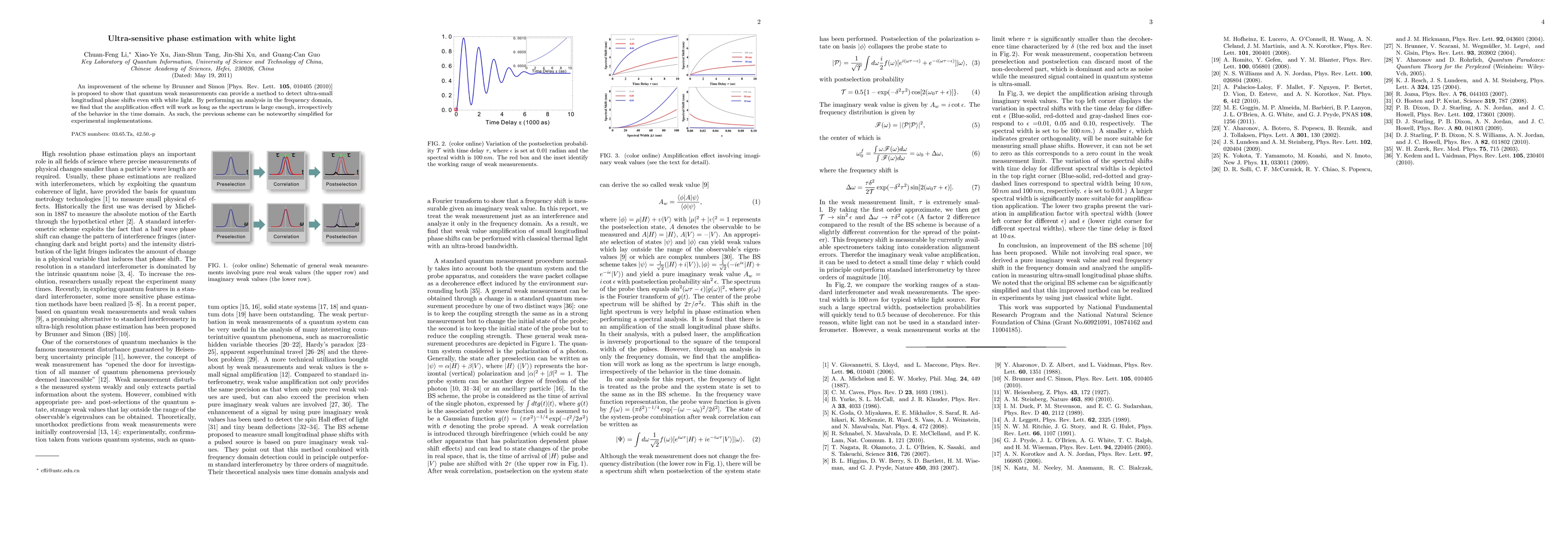 An improvement of the scheme by Brunner and Simon [Phys. Rev. Lett. 105, 010405 (2010)] is proposed in order to show that quantum weak measurements can provide a method to detect ultrasmall longitudinal phase shifts, even with white light. By performing an analysis in the frequency domain, we find that the amplification effect will work as long as the spectrum is large enough, irrespective of the behavior in the time domain. As such, the previous scheme can be notably simplified for experimental implementations.