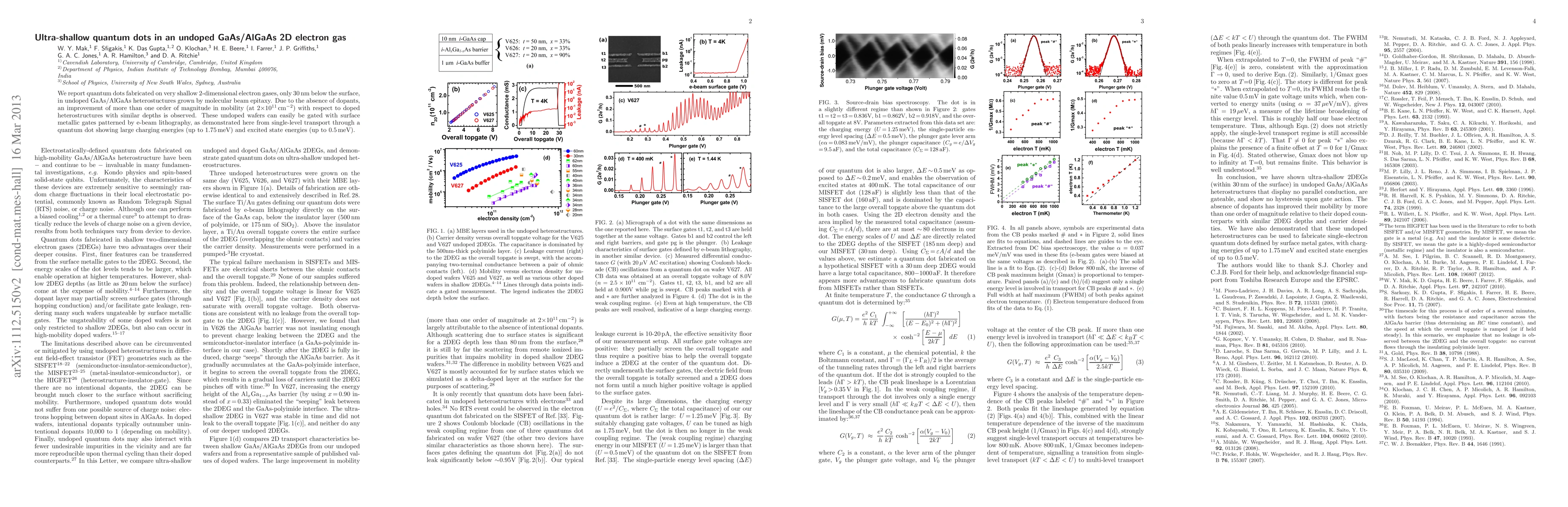 This paper describes ultra-shallow quantum dots in undoped GaAs/AlGaAs heterostructures, achieving significantly higher mobility compared to doped counterparts. The fabrication method employs molecular beam epitaxy, allowing for easy gating via surface metallic gates, demonstrating single-level transport with notable charging and excited state energies.
