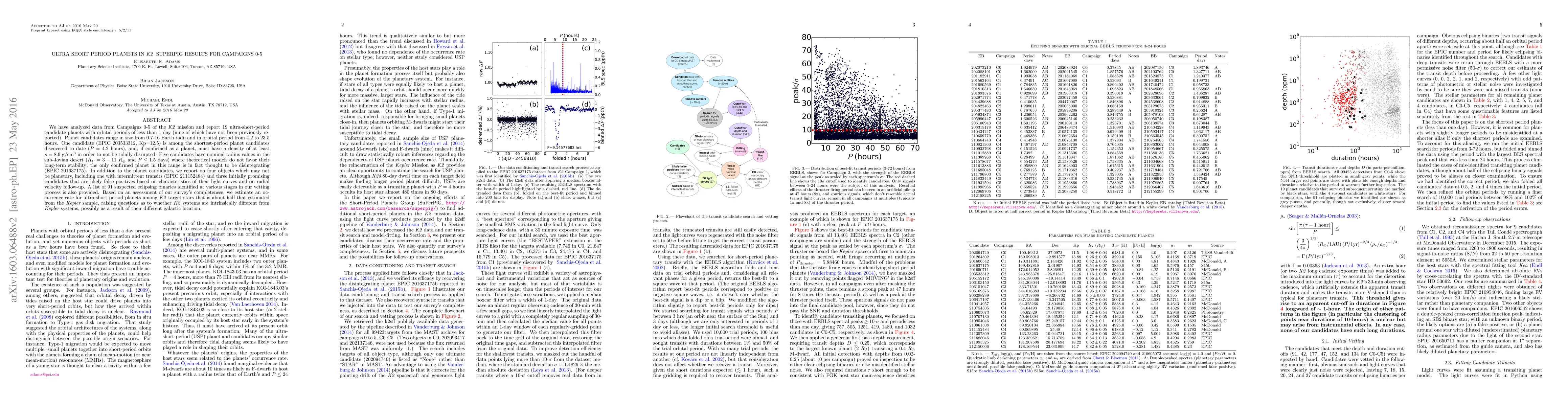 This study analyzes K2 mission data from Campaigns 0-5, identifying 19 ultra-short period planet candidates with orbital periods less than 1 day, including nine new discoveries. The candidates range from 0.7 to 16 Earth radii, with one candidate having an exceptionally short period of 4.2 hours. The research also discusses the stability of planets in the sub-Jovian desert and identifies four objects likely not planetary.
