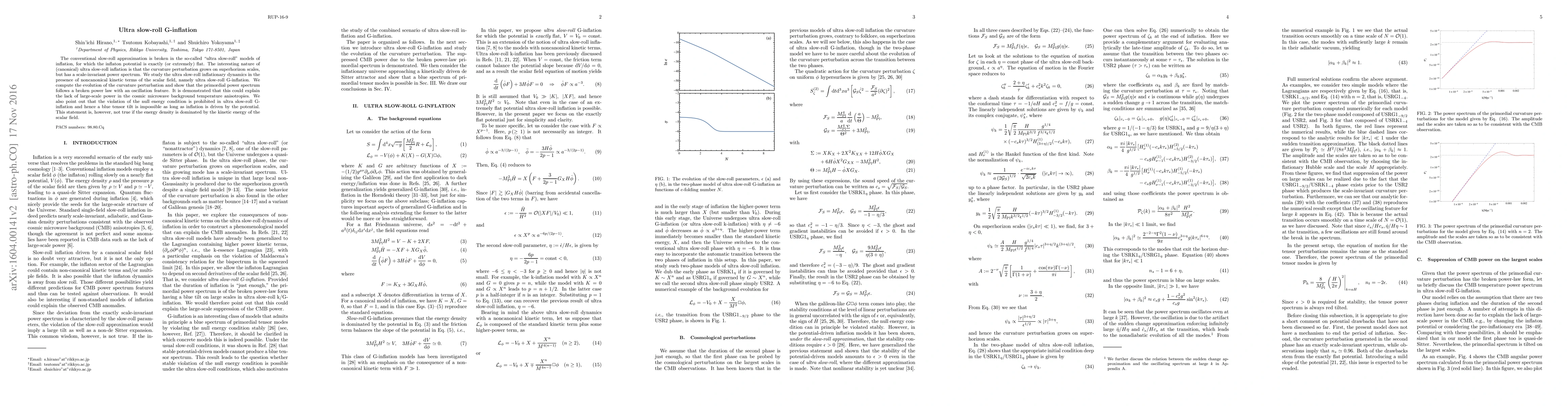 This paper explores ultra slow-roll G-inflation, where the inflaton potential is extremely flat, leading to a broken power law primordial power spectrum with an oscillation feature. It explains the lack of large-scale power in cosmic microwave background temperature anisotropies and notes that the null energy condition is preserved, preventing a blue tensor tilt unless kinetic energy dominates.