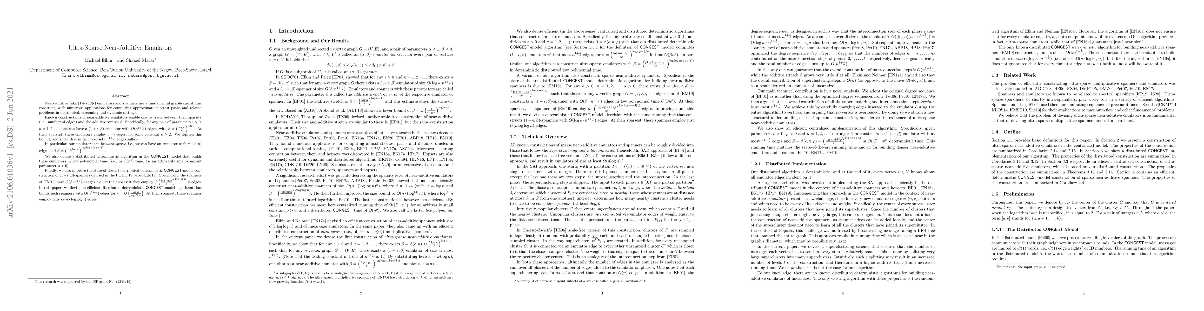 Near-additive (aka $(1+\epsilon,\beta)$-) emulators and spanners are a fundamental graph-algorithmic construct, with numerous applications for computing approximate shortest paths and related problems in distributed, streaming and dynamic settings. Known constructions of near-additive emulators enable one to trade between their sparsity (i.e., number of edges) and the additive stretch $\beta$. Specifically, for any pair of parameters $\epsilon >0$, $ \kappa=1,2,\dots$, one can have a $(1+\epsilon,\beta)$-emulator with $O(n^{1+1/\kappa})$ edges, with $\beta = \left(\frac{\log \kappa}{\epsilon}\right)^{\log \kappa}$. At their sparsest, these emulators employ $c\cdot n$ edges, for some constant $c\geq 2$. We tighten this bound, and show that in fact precisely $n^{1+1/\kappa}$ edges suffice. In particular, our emulators can be \emph{ultra-sparse}, i.e., we can have an emulator with $n+o(n)$ edges and $\beta = \left(\frac{\log {\log n}}{\epsilon }\right)^{{\log {\log n}}(1+o(1))}$. We also devise a distributed deterministic algorithm in the CONGEST model that builds these emulators in low polynomial time (i.e., in $O(n^\rho)$ time, for an arbitrarily small constant parameter $\rho >0$). Finally, we also improve the state-of-the-art distributed deterministic \congest-model construction of $(1+\epsilon,\beta)$-spanners devised in the PODC'19 paper [ElkinM19]. Specifically, the spanners of [ElkinM19] have $O(\beta\cdot n^{1+1/\kappa})$ edges, i.e., at their sparsest they employ $ O\left(\frac{\log {\log n}}{\epsilon }\right)^{{\log {\log n}}}\cdot n$ edges. In this paper, we devise an efficient distributed deterministic CONGEST-model algorithm that builds such spanners with $O(n^{1+1/\kappa})$ edges for $\kappa = O\left(\frac{\log n}{\log ^{(3)}n}\right)$. At their sparsest, these spanners employ only $O(n\cdot {\log {\log n}})$ edges.