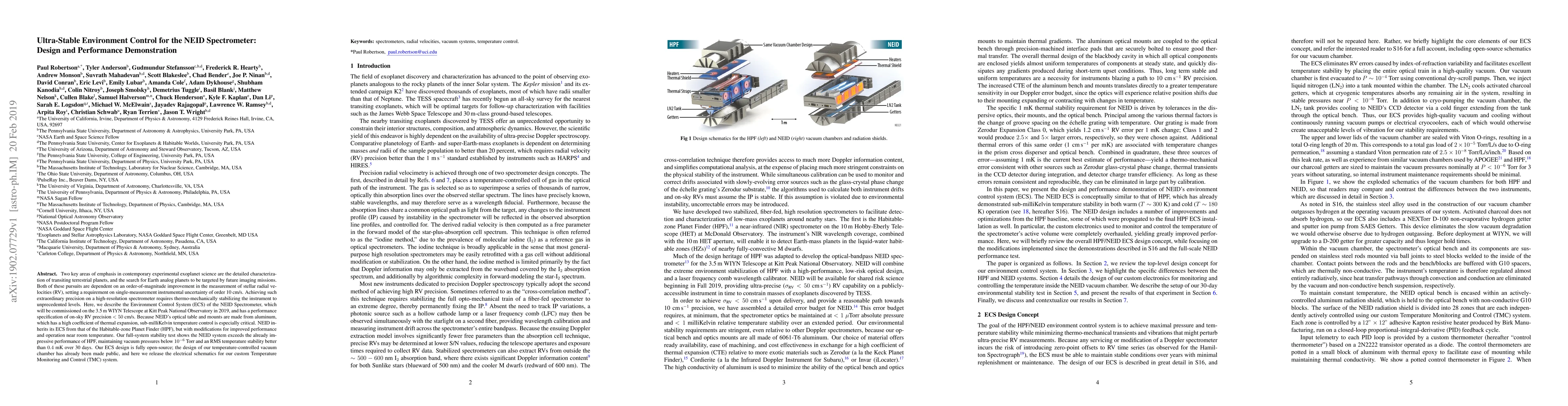 The research describes the design and performance of the NEID Spectrometer's Environment Control System (ECS), which includes a temperature-controlled vacuum chamber and custom Temperature Monitoring and Control (TMC) system, aiming for ultra-stable conditions to achieve 10 cm/s RV precision.