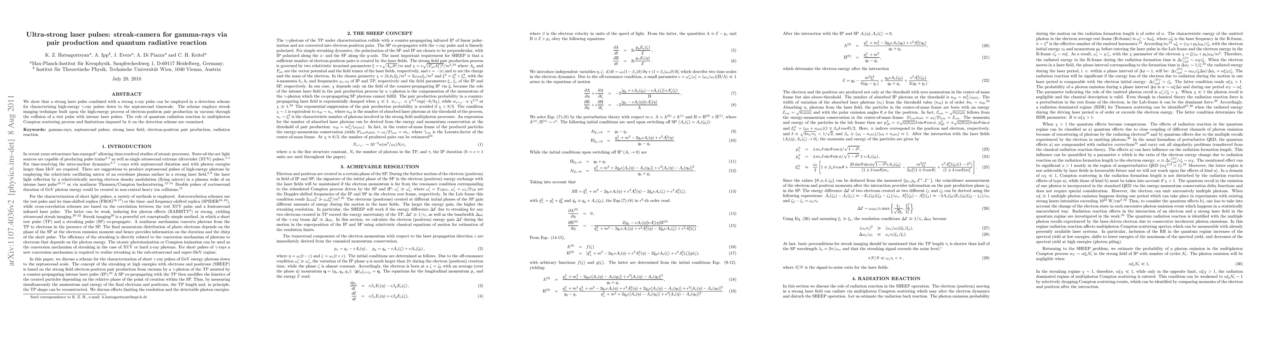 This paper proposes a detection scheme using ultra-strong laser pulses and streak imaging to characterize high-energy gamma-ray pulses on zeptosecond timescales. It explores the electron-positron pair production via laser-gamma interactions and examines the quantum radiation reaction's role in the multiphoton Compton scattering process.