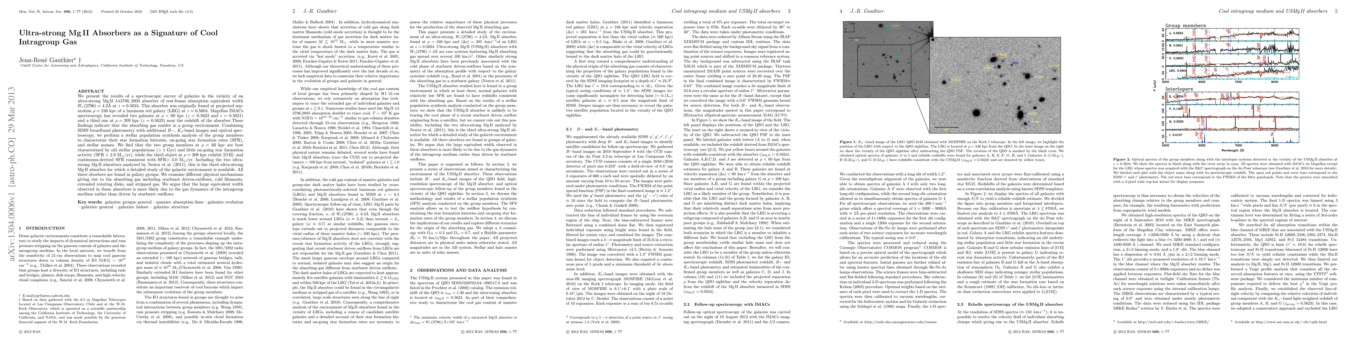 We present the results of a spectroscopic survey of galaxies in the vicinity of an ultra-strong MgII \lambda\lambda 2786,2803 absorber of rest-frame absorption equivalent width W_r(2796)=4.2\AA\ at z=0.5624. This absorber was originally found at projected separation \rho=246 kpc of a luminous red galaxy (LRG) at z=0.5604. Magellan IMACs spectroscopy has revealed two galaxies at \rho < 60 kpc (z=0.5623 and z=0.5621) and a third one at \rho=209 kpc (z=0.5623) near the redshift of the absorber.These findings indicate that the absorbing gas resides in a group environment. Combining SDSS broadband photometry with additional B-, K_s-band images and optical spectroscopy, we perform a stellar population synthesis analysis of the group members to characterize their star formation histories, on-going star formation rates (SFR), and stellar masses. We find that the two group members at \rho < 60 kpc are best characterized by old stellar populations (>1 Gyr) and little on-going star formation activity (SFR<2.9 \msun/yr), while the third object at \rho=209 kpc exhibit [OII]- and continuum-derived SFR consistent with SFR>3.0 \msun/yr. Including the two ultra-strong MgII absorbers analyzed by Nestor et al. (2011), this is the third ultra-strong MgII absorber for which a detailed study of the galactic environment is available. All three aborbers are found in galaxy groups. We examine different physical mechanisms giving rise to the absorbing gas including starburst driven-outflows, cold filaments, extended rotating disks, and stripped gas. We argue that the large equivalent width observed in these absorbers is more likely due to the gas dynamics of the intragroup medium rather than driven by starburst outflows.