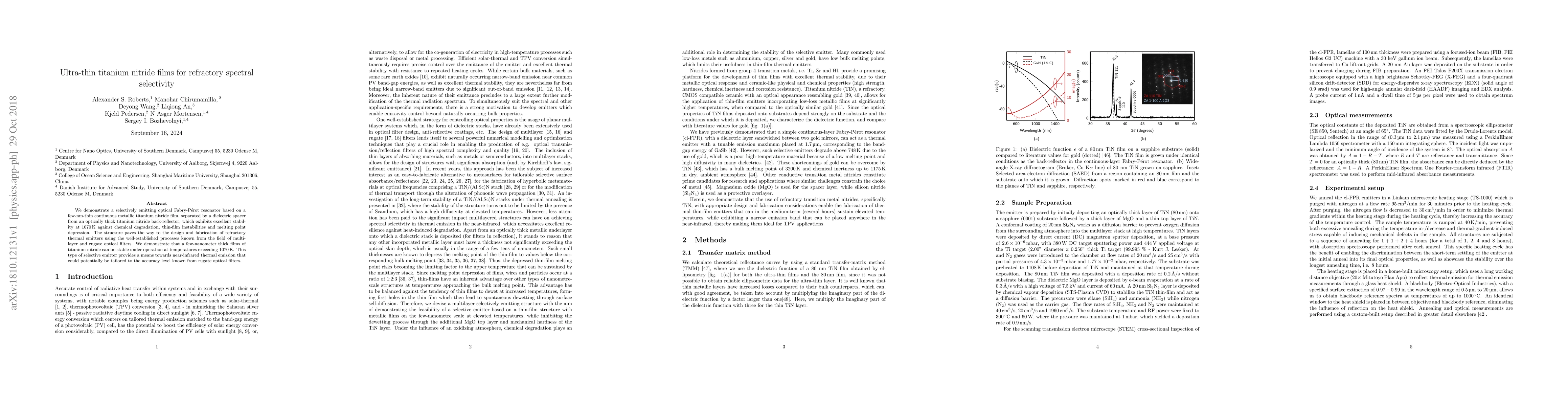 This paper demonstrates a selectively emitting optical resonator using ultra-thin titanium nitride films, showing excellent stability at 1070 K and paving the way for refractory thermal emitters with high precision near-infrared thermal emission.