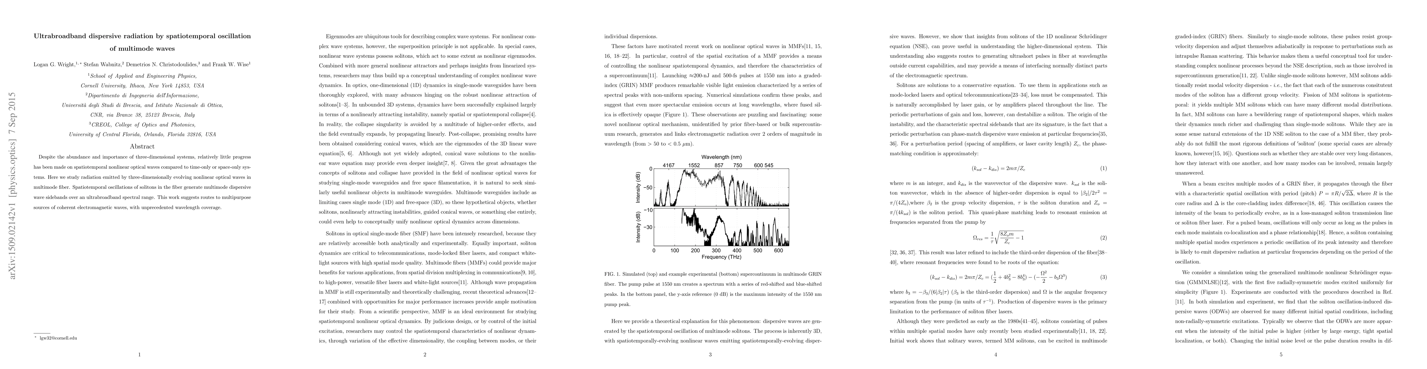 This research investigates the ultrabroadband dispersive radiation from spatiotemporal oscillations of multimode waves in nonlinear optical fibers, revealing the potential for creating versatile sources of coherent electromagnetic waves with extensive spectral coverage.