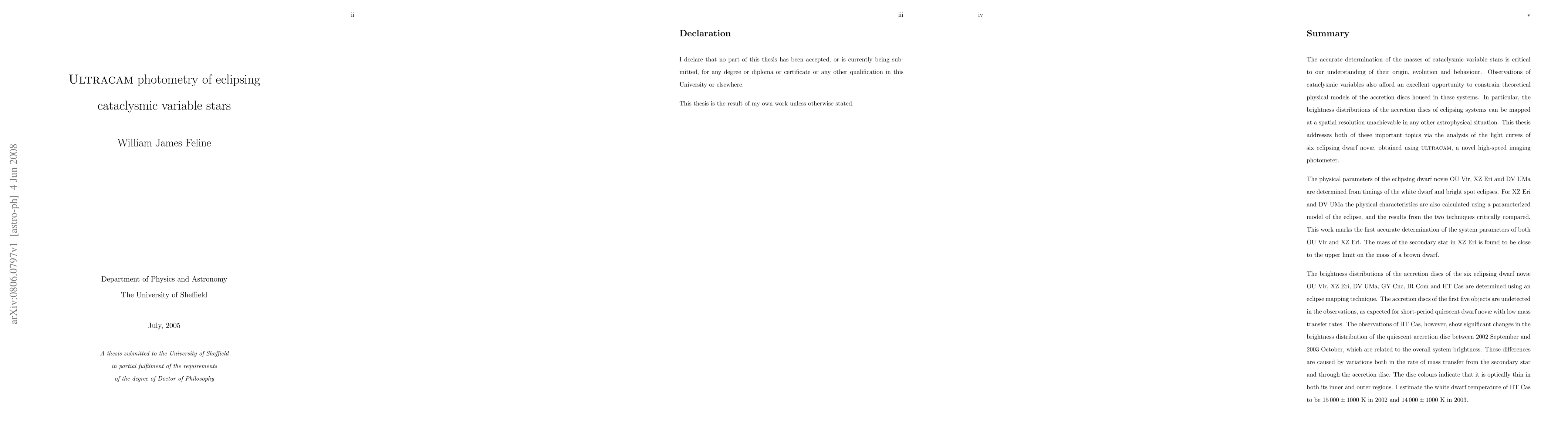 Development and application of advanced photometric techniques using ULTRACAM to achieve high-speed imaging and detailed analysis of eclipsing cataclysmic variable stars.