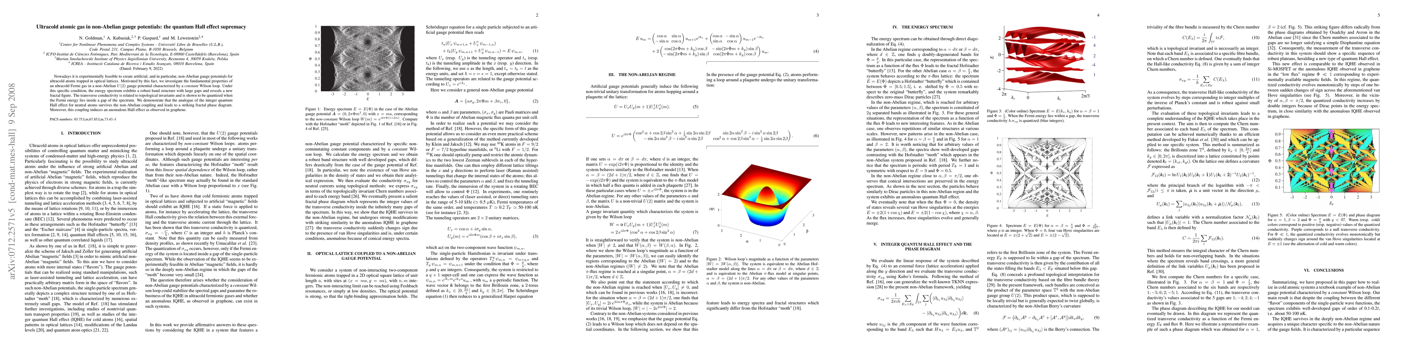 This paper explores ultracold Fermi gases in non-Abelian U(2) gauge potentials, revealing a robust band structure with quantized transverse conductivity akin to the integer quantum Hall effect, and demonstrating a fractal phase diagram and an anomalous Hall effect.