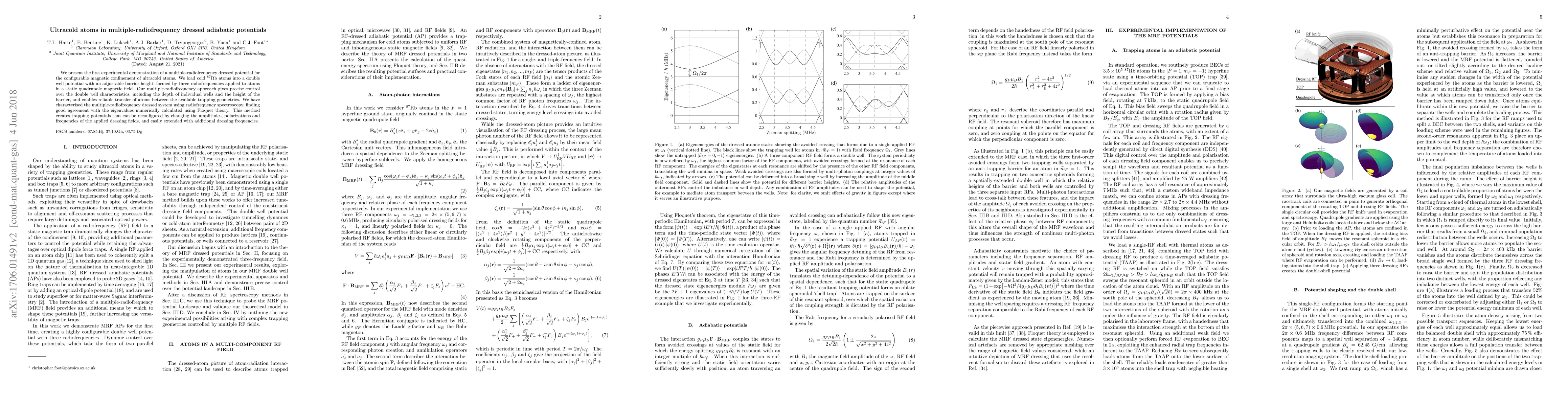 This research demonstrates a precise method for configuring magnetic confinement of ultracold $^{87}$Rb atoms using multiple-radiofrequency dressed potentials, achieving adjustable double well trapping and enabling reliable atom transfer, validated through radiofrequency spectroscopy and numerical calculations.