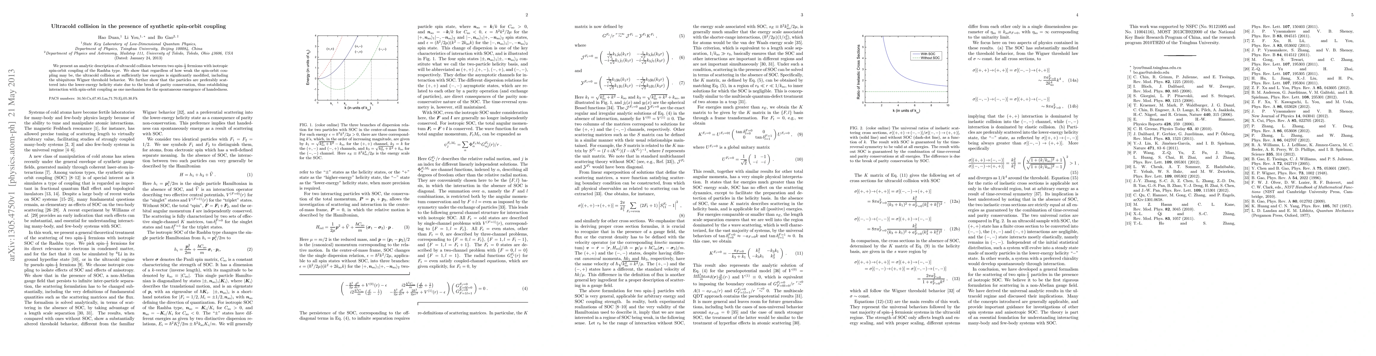 We present an analytic description of ultracold collision between two spin-$\frac{1}{2}$ fermions with isotropic spin-orbit coupling of the Rashba type. We show that regardless of how weak the spin-orbit coupling may be, the ultracold collision at sufficiently low energies is significantly modified, including the ubiquitous Wigner threshold behavior. We further show that the particles are preferably scattered into the lower-energy helicity state due to the break of parity conservation, thus establishing interaction with spin-orbit coupling as one mechanism for the spontaneous emergence of handedness.