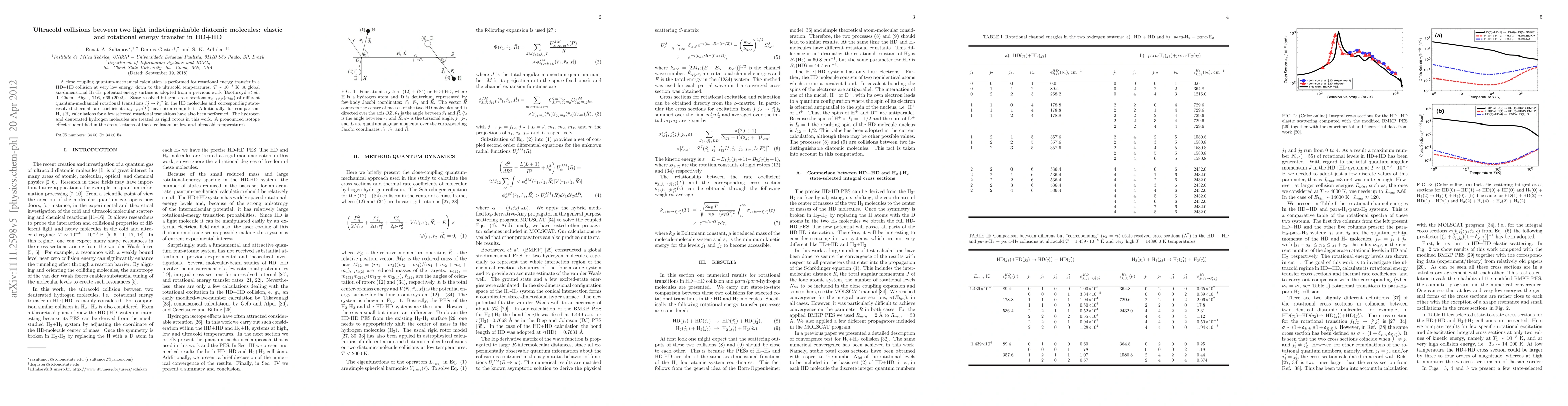 This paper investigates ultracold collisions between HD+HD molecules, focusing on rotational energy transfer at temperatures as low as $T \sim 10^{-8}$ K. Quantum-mechanical calculations reveal pronounced isotope effects in the state-resolved cross sections and thermal rate coefficients for rotational transitions.