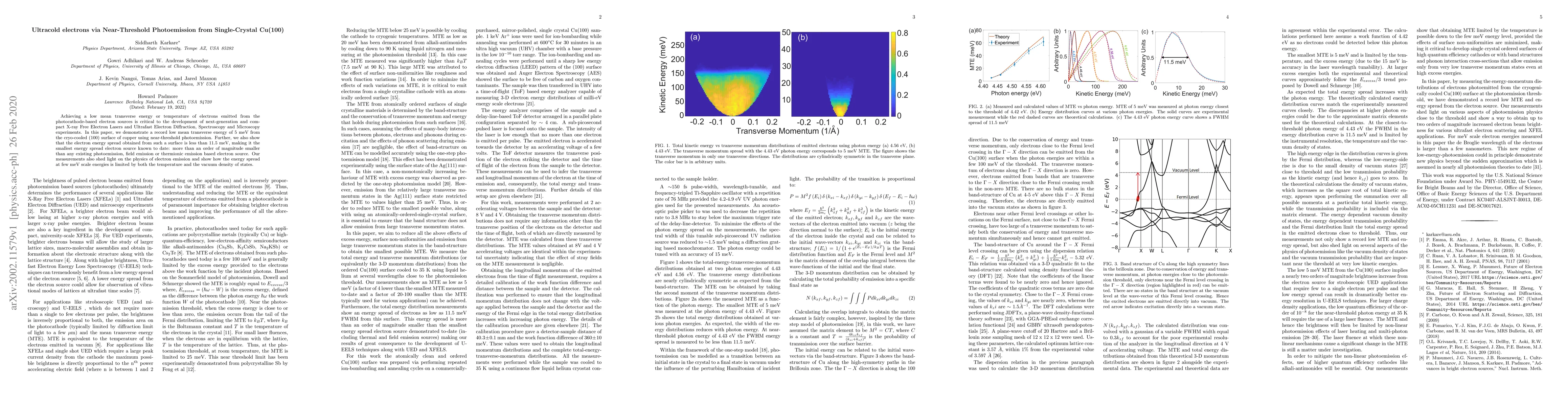 Researchers created a record low mean transverse energy of 5 meV from copper using near-threshold photoemission, achieving the smallest energy spread electron source to date, with implications for next-generation X-ray Free Electron Lasers.