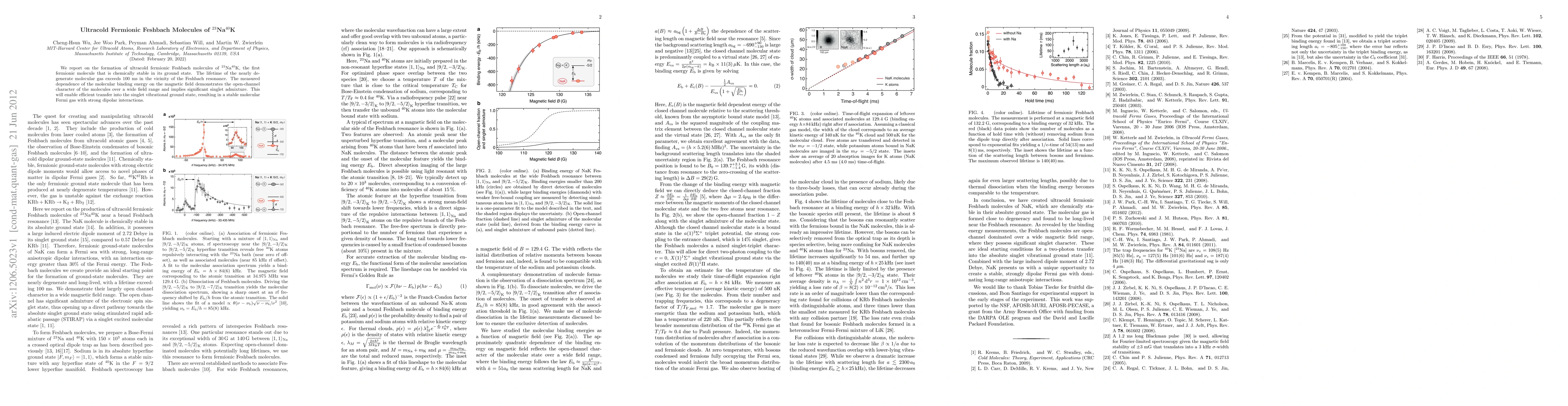 This paper reports the creation of ultracold fermionic Feshbach molecules of $^{23}$Na$^{40}$K, the first chemically stable fermionic molecule in its ground state. The study reveals a molecular gas lifetime exceeding 100 ms near the Feshbach resonance and significant singlet admixture, facilitating efficient singlet vibrational ground state transfer and enabling stable molecular Fermi gas with strong dipolar interactions.