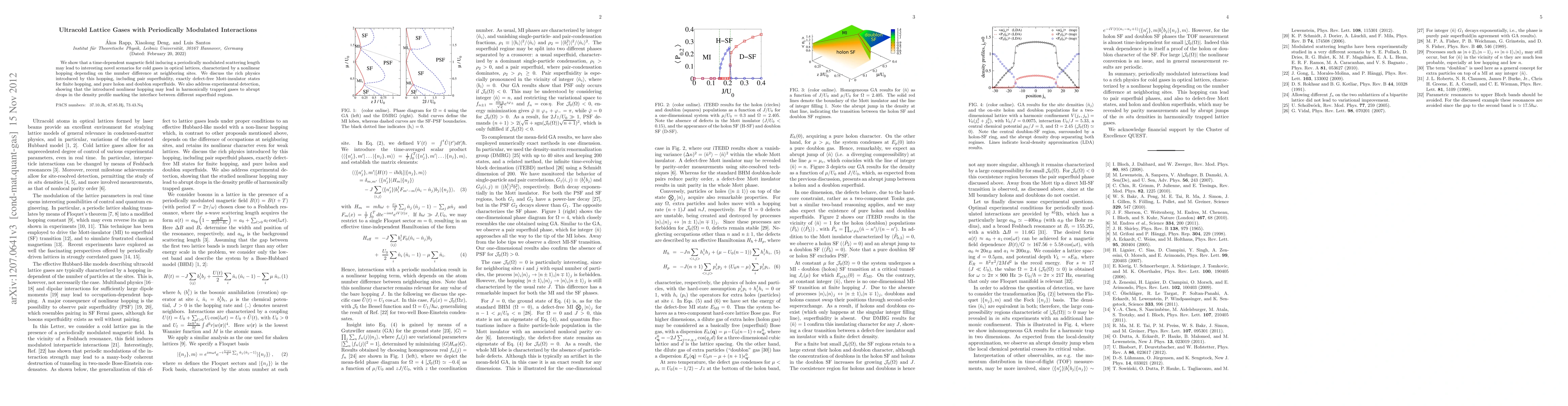 This research explores ultracold gases in optical lattices under periodically modulated interactions via a time-dependent magnetic field, revealing nonlinear hopping and phenomena like pair superfluidity and defect-free Mott insulators. Experimental detection is suggested through density profile drops indicating different superfluid regions.