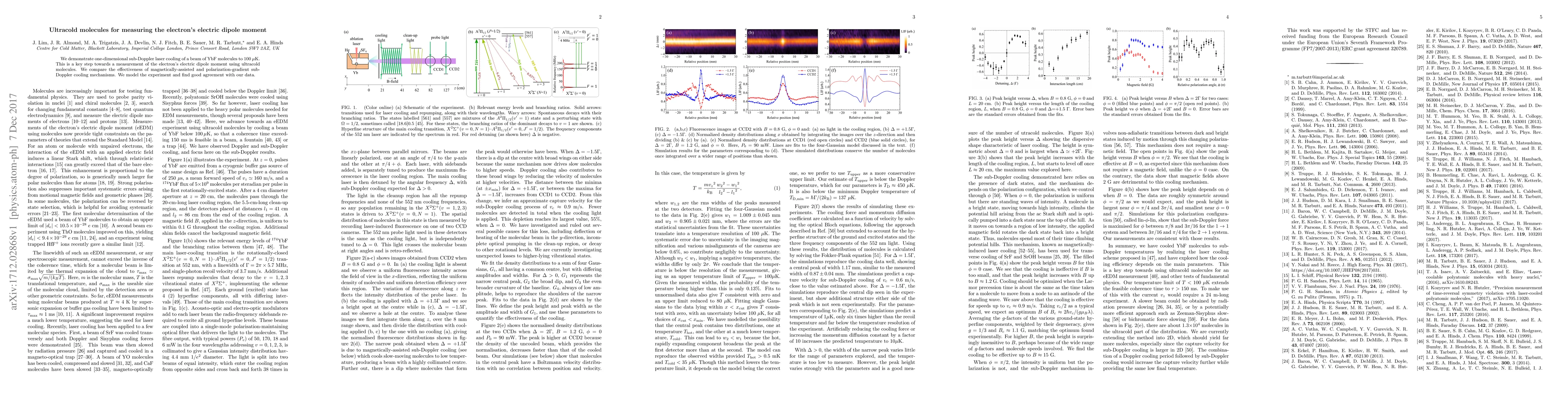 This paper details the successful one-dimensional sub-Doppler laser cooling of YbF molecules to 100 $\mu$K, a crucial step towards measuring the electron's electric dipole moment. The study compares magnetically-assisted and polarization-gradient cooling methods, with modeling showing good agreement with experimental data.