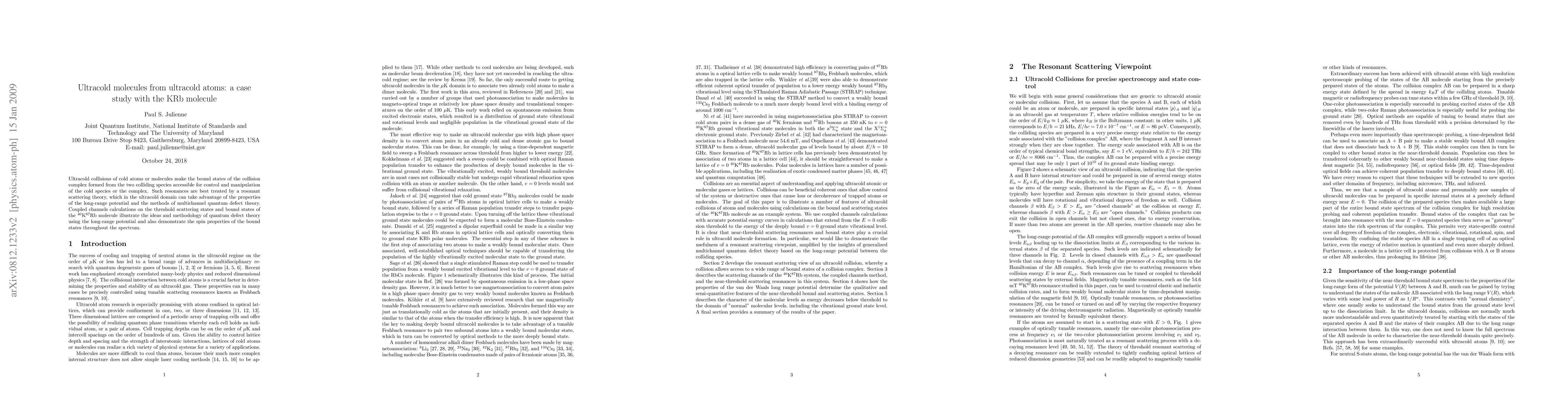This paper explores ultracold collisions of atoms to form KRb molecules, utilizing resonant scattering theory and multichannel quantum defect theory to control and manipulate the bound states. The study demonstrates the methodology through coupled channels calculations on the 40K87Rb molecule, highlighting the long-range potential and spin properties of the bound states.