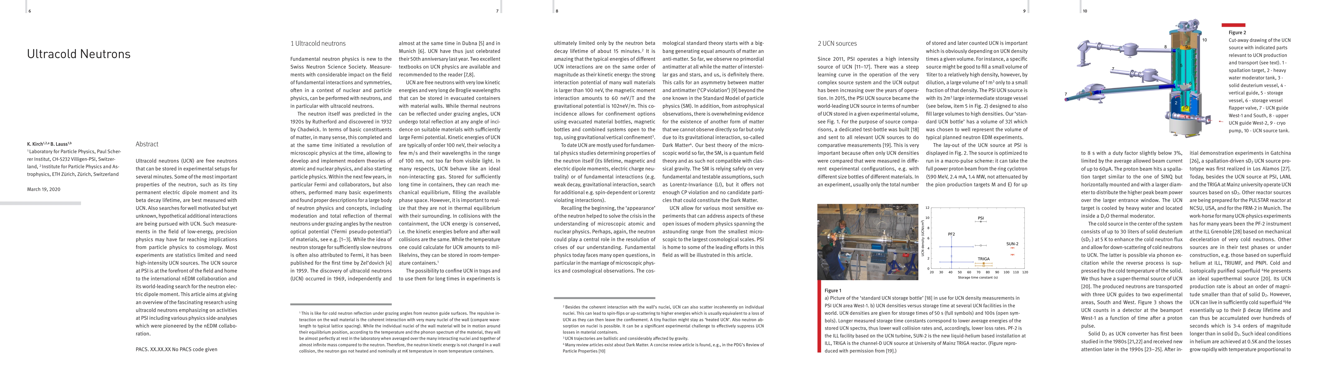 This paper provides an overview of ultracold neutrons (UCN) and their applications in precision physics, highlighting the UCN source at PSI and its role in the international nEDM collaboration's search for the neutron electric dipole moment, emphasizing the potential implications for particle physics and cosmology.