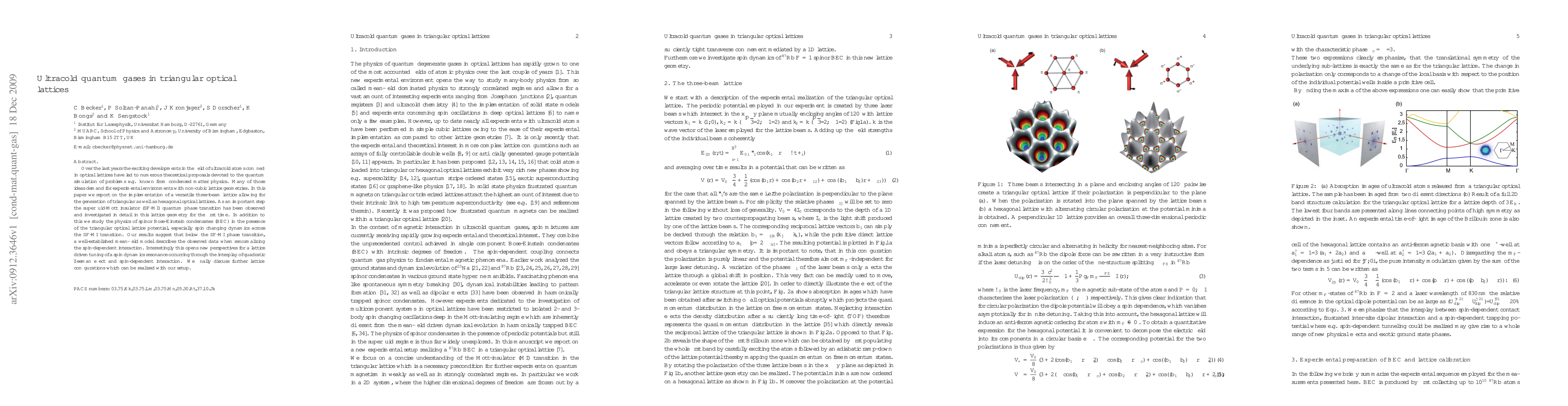 This paper reports on the creation of a versatile three-beam lattice for triangular and hexagonal optical lattices, observing the superfluid-Mott insulator quantum phase transition for the first time in this geometry. It also investigates spinor Bose-Einstein condensates dynamics, suggesting mean-field models can describe data below the transition when adjusting spin-dependent interactions.