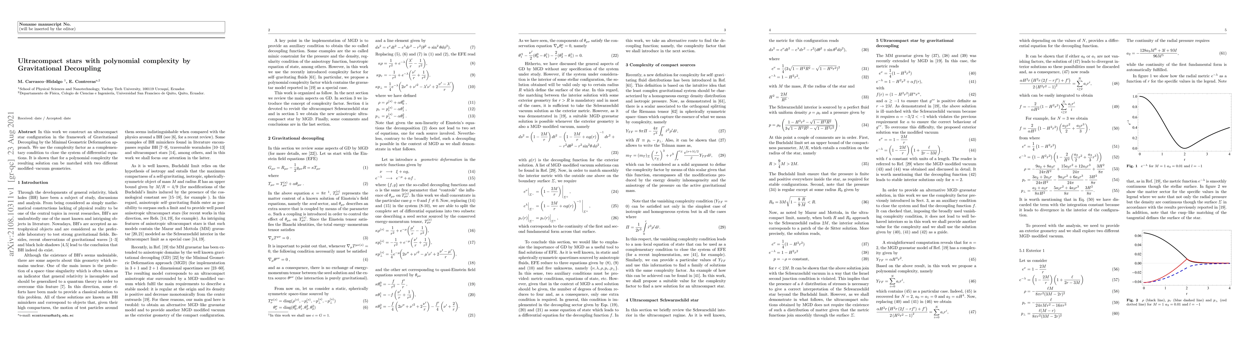 This paper constructs ultracompact star configurations using Gravitational Decoupling and Minimal Geometric Deformation, employing polynomial complexity as a condition to solve the differential equations, resulting in solutions matching two modified-vacuum geometries. The study highlights the potential for simplified complexity in ultracompact star models.